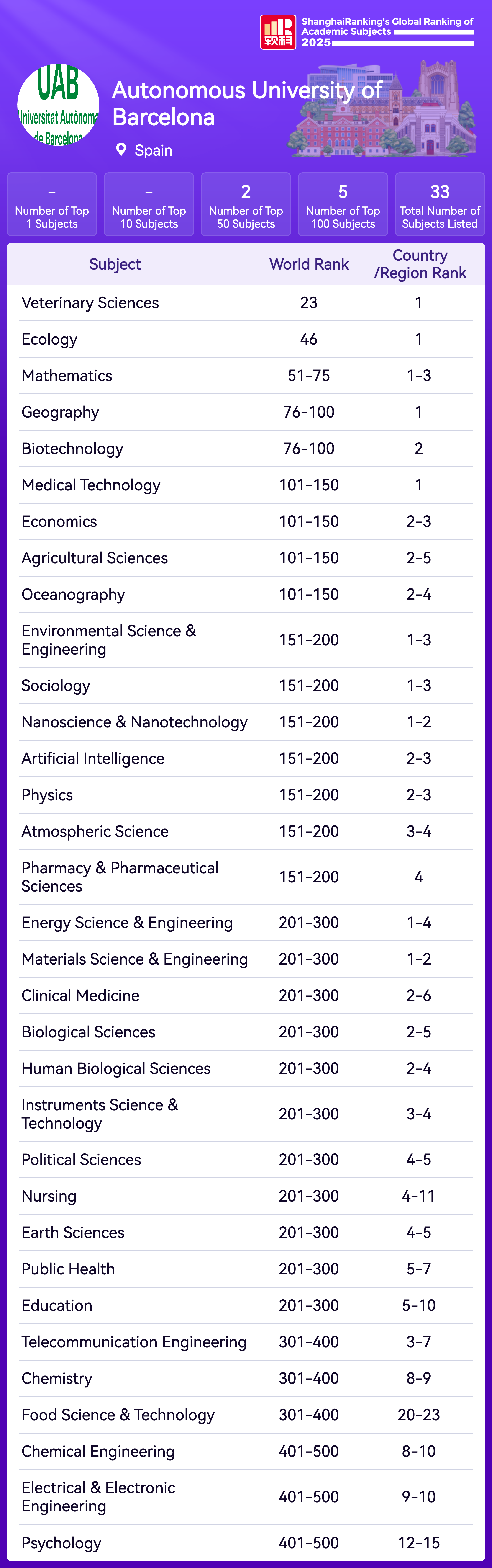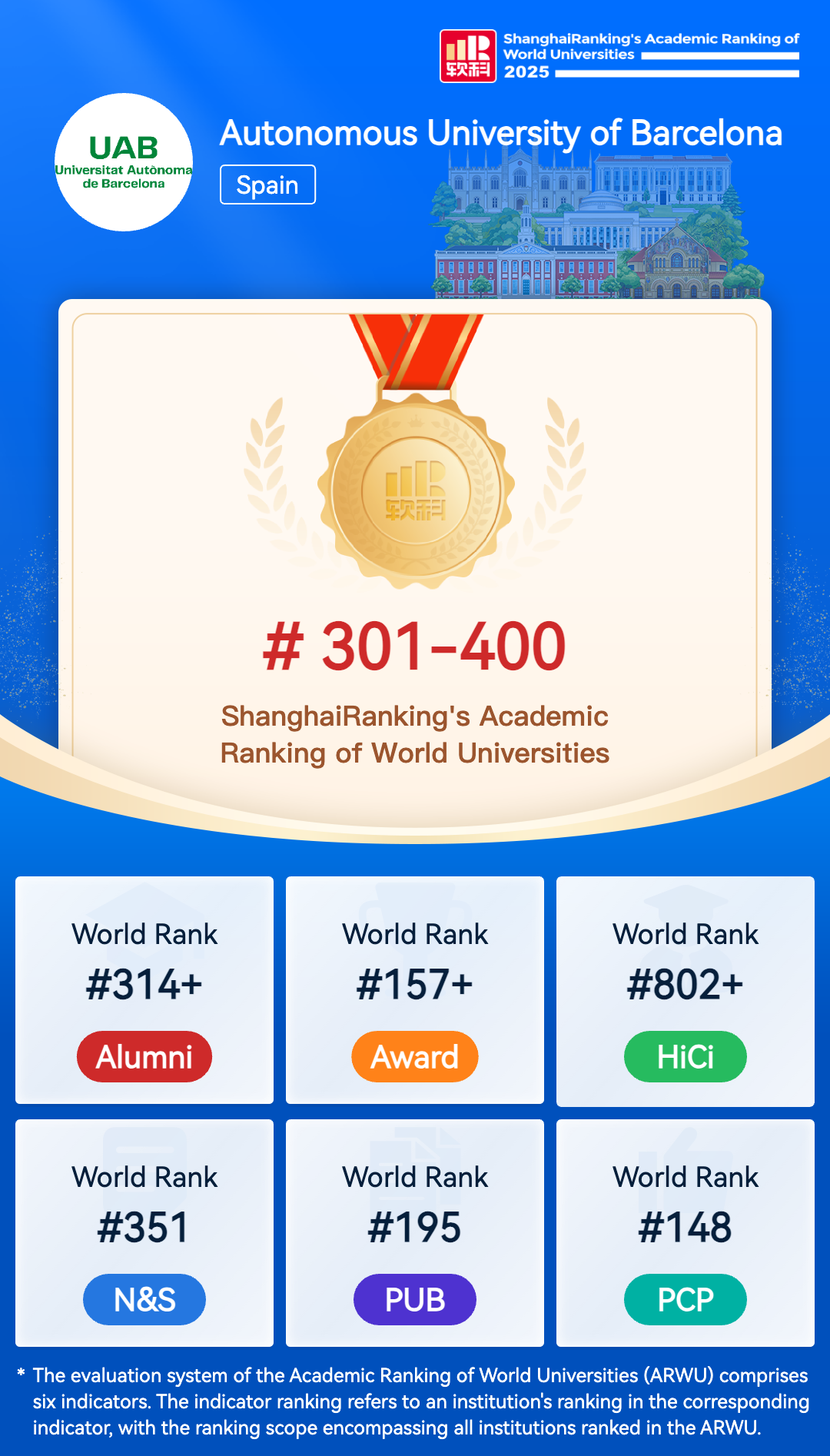 The Universitat Autònoma de Barcelona (UAB) is known for its excellence in research and quality in teaching, and is a reference centre in Europe. The UAB is located only 25 minutes via public transportation from Barcelona’s city centre, a cosmopolitan metropolis lying on the shores of the Mediterranean Sea. The main campus is located in Bellaterra, in the heart of one of the main industrial and technological poles of Mediterranean Europe. The UAB caters to all aspects of university life. The campus is a true city of knowledge with almost 50,000 inhabitants: students, lecturers, researchers and administrative staff. It is organised with all the necessary services for the university community: residence halls (2,100 places), specialised libraries, a language learning centre, sport facilities (with a gym, pools, football pitch, etc.), healthcare centre, restaurants, stores and cafés. The UAB offers top-level postgraduate and graduate programmes in almost all areas of knowledge: · 113 bachelor's degrees. Its international dimension can also be seen by the high number of students from abroad enrolled (1,423 international bachelor’s degree students). The degrees in Business Management and Administration, Economics, Primary Education and Tourism are offered fully in English, and many other degrees offer subjects in English. · 222 Master’s Degrees, whose aim is to provide students with an advanced-level, specialised, multidisciplinary education oriented towards both professional specialisation and research initiation. · 68 PhD programmes, providing advanced training in research techniques, culminating in a doctoral thesis (709 PhD theses in 2022-2023). They involve preparing and defending a thesis and usually last three years, with the aim of producing top-level academic and professionals. A total of 27 of the UAB’s PhD programmes have received an Excellence Award. The European Doctoral Research Component includes stays in different European countries and the participation of lecturers from foreign universities. The international dimension of the UAB can be seen by the number of students enrolled from abroad, especially in master's degrees with 1,086 international students (42%), and PhD programmes with 1,762 international students (36%). There are over 45 master's degrees taught 100% in English. Each summer, the UAB holds the UAB Barcelona Summer School, which teaches undergraduate subjects in a range of different fields. Courses are taught 100% in English. It is usually held in two different periods: June-July and July-August. The UAB promotes innovation, employability and entrepreneurship. It strives to foster research and transfer in all areas of knowledge and works closely together with the surrounding business and industrial community, as well as with scientific centres such as the Alba Synchrotron Light Facility, located five minutes away from campus. The UAB campus includes 351 research groups, 57 departments and 68 research institutes and centres, many of which were created in collaboration with important scientific institutions, and all of which conduct a large amount of research activities (4,901 articles published in indexed journals according to 2022 Scopus database). Research activities are also carried out in the five UAB-affiliated hospitals, three of which have been awarded the Carlos III Health Institute’s seal of excellence. The university actively encourages the involvement and participation of its students in volunteering activities and community service, and has been recognised by several institutes for these tasks. It also carries out awareness-raising campaigns among the university community. The UAB facilitates participation in mobility programmes and works to attract students from abroad (3,546 international mobility students). Its most important projects are Erasmus Mundus, Comenius, Leonardo Da Vinci and Erasmus K2. It also has specific programmes which welcome and aid international students once they arrive at the UAB. Under the Erasmus programme alone, the UAB has 1,300 bilateral agreements with more than 500 universities in Europe.