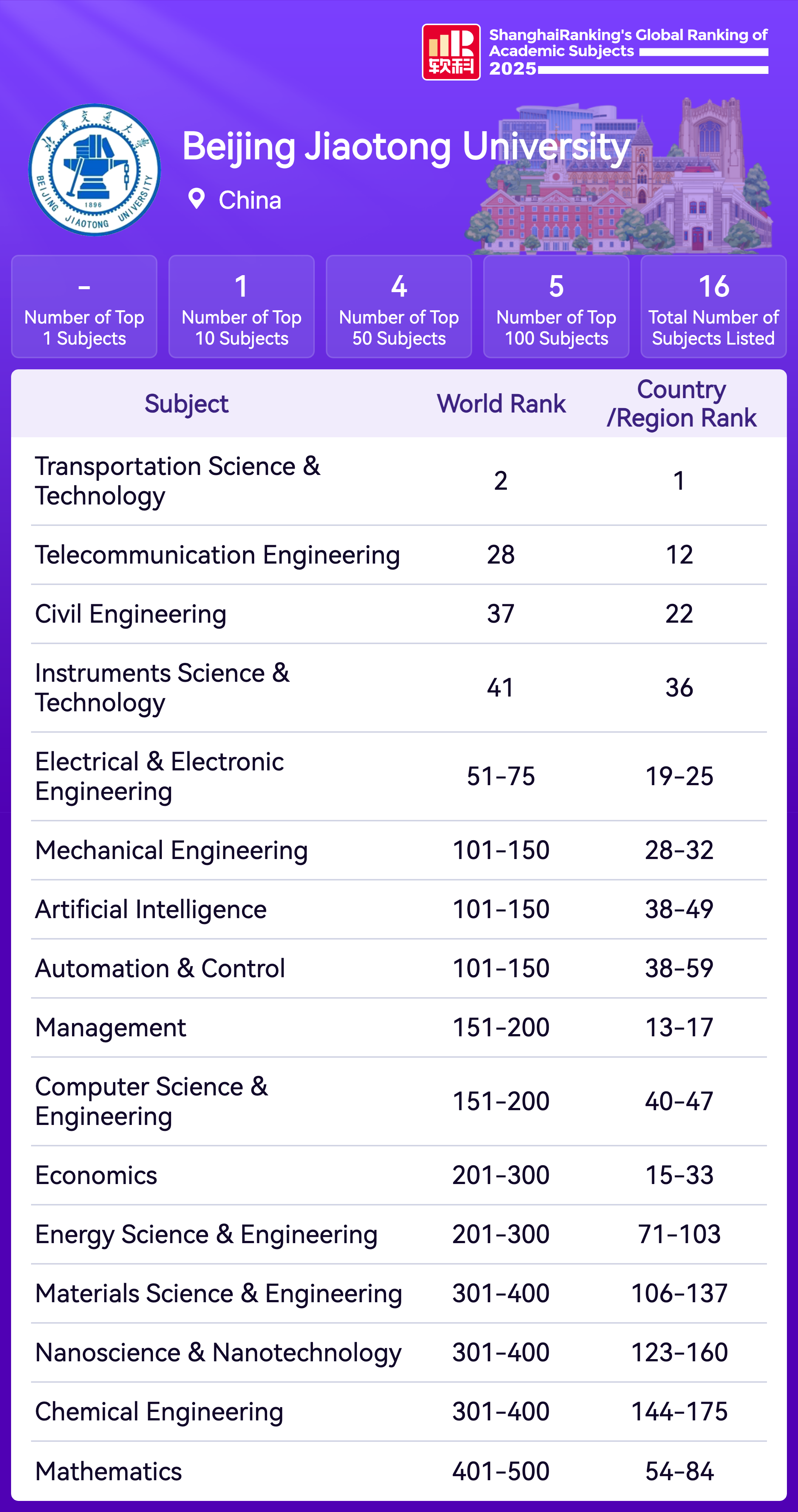 Beijing Jiaotong University (BJTU) can trace its history back to 1896 when the Nanyang Public School, the common origin shared by China’s five Jiaotong universities, namely, Beijing, Shanghai, Xi’an, Southwest and Hsinchu Jiaotong Universities, was founded in Shanghai under the order of the imperial court of the Qing Dynasty (1644-1911). BJTU grew out of the Beijing Railway Management Institute, China’s first higher educational institute which was committed to fostering railway management talents and initiated modern China’s education in railway management and telecommunication. BJTU has achieved distinction in offering a range of academic programs thanks to its development in over one hundred years. The university has been closely connected with the nation’s railway industry since its establishment. The faculty and students of BJTU have made great contributions to the growth of China’s railways, having participated in almost all the major events in different stages of development of the industry, from the movements for protecting railway rights and saving the nation in the 1900s to the great endeavor of building railways after the founding of the People’s Republic of China, from the massive industrial development movement in China’s southwest interior in the 1960s to the six railway speed-raising campaigns in recent years, from the completion of the Qinghai-Tibet Railway and the application of heavy-haul trains on the Datong-Qinhuangdao Railway to the building of high-speed railways and modern urban rail transit systems throughout the country in contemporary times. While improving its unique strength in such disciplines as Traffic and Transportation, Communications and Information, Economics and Management as well as Mechanical and Electrical Engineering, BJTU has fostered a strong sense of collaboration and innovation to improve its quality of education. The university has become an important base to turn out talents, especially outstanding talents in information technology and urban rail transit, for the economic and social development of China. It has also remained an influential institution which can help to solve significant technological and policy-making problems encountered in the development of the country’s economy, society and modern transportation systems. BJTU has witnessed great changes since its founding. What remains unchanged is its emphasis on the principle of learning for practical application, meticulous scholarship, pursuit of innovation and practical and realistic work style. Inspired by these traditions, BJTU has maintained high academic standards and has been devoted to producing talents who can have both a firm footing in the basics and a strong sense of how the knowledge can be applied in the real world. The 10th Beijing Jiaotong University Congress of the Communist Party of China (CPC) was successfully held in April, 2012. BJTU has become a university administered and supported jointly by the Ministry of Education, the Ministry of Railways and the Beijing People’s Municipal government since April 26, 2012 when an agreement was signed among the three parties. A plan for developing a new campus, an innovation center for rail transit as well, in Pinggu on the outskirts of Beijing has been conceived and gained strong support from the Ministry of Education and the local government. Sticking to its motto “to learn and to practice” and seizing the opportunities of development, BJTU has been steadily advancing toward its goal of building itself into a world-renowned university with high-level distinction in the mid-21st century.
