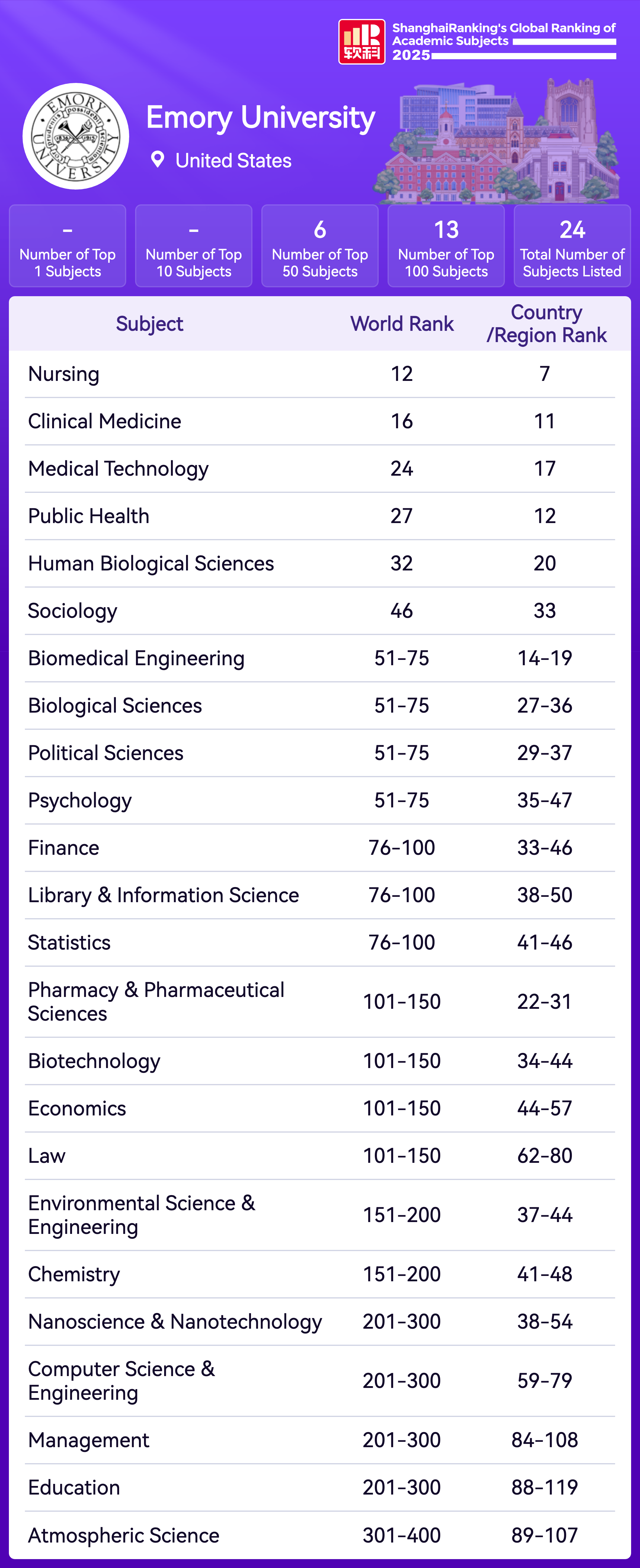 | Subject | Rank |