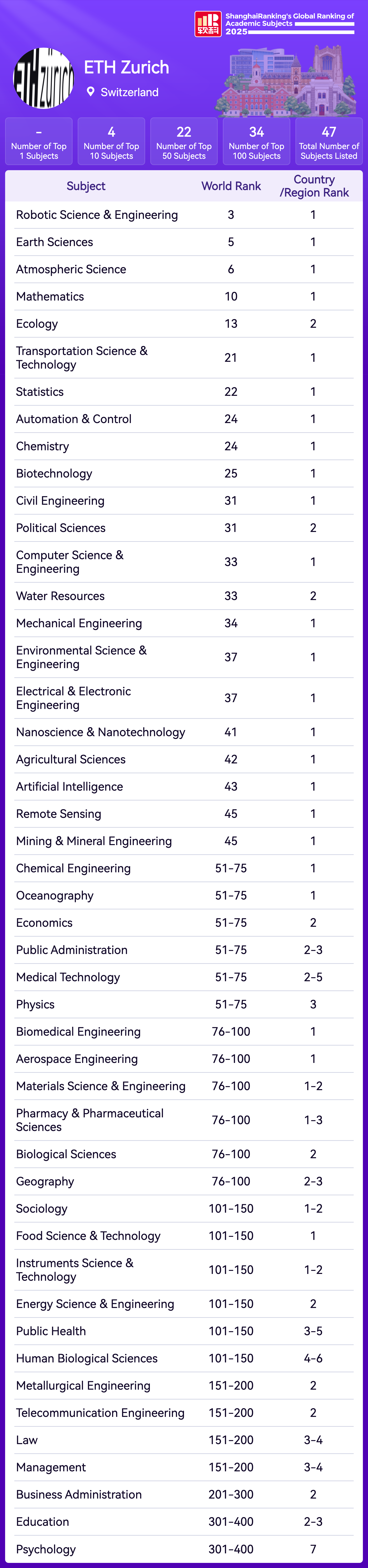 Freedom, responsibility, entrepreneurial spirit, and an openness to the world - the values of Switzerland form the foundation of ETH Zurich. Since 1855, this university of science and technology has been a centre of knowledge and innovation. Situated in the heart of Europe, yet forging connections around the world, ETH Zurich pioneers effective solutions to the global challenges facing humanity. ETH Zurich's 530 professors and 20,600 students from more than 120 countries generate innovative research embracing a broad spectrum of disciplines including: the natural sciences, engineering, architecture, nano and data sciences, robotics, mathematics as well as cutting edge medical technologies. Switzerland’s advanced economy benefits from the nearly 100 patents, 200 inventions, and 25 spin-off companies emerging from the university each year. With a commendable record for scientific excellence, ETH Zurich has been home to 21 Nobel laureates, including Albert Einstein, and ranks among the world's top universities.