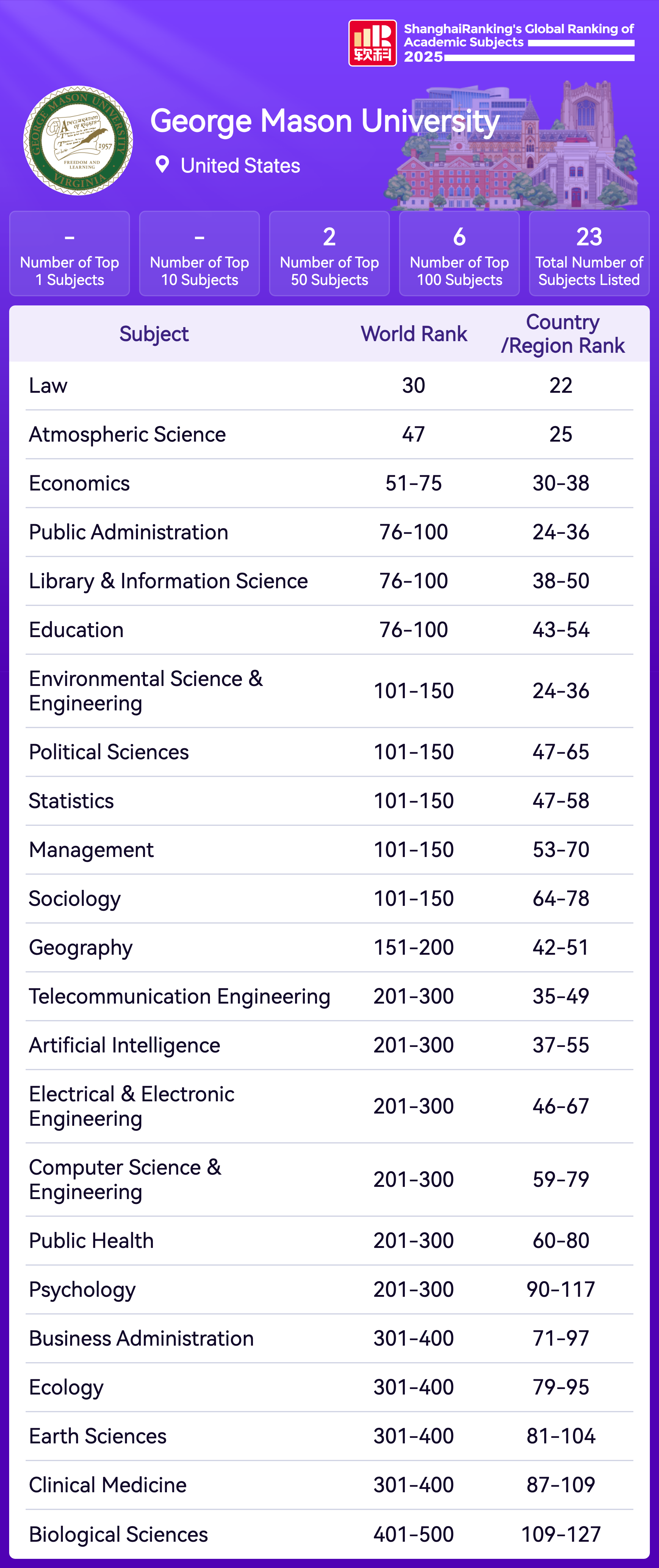 Library & Information Science | 76-100 |
