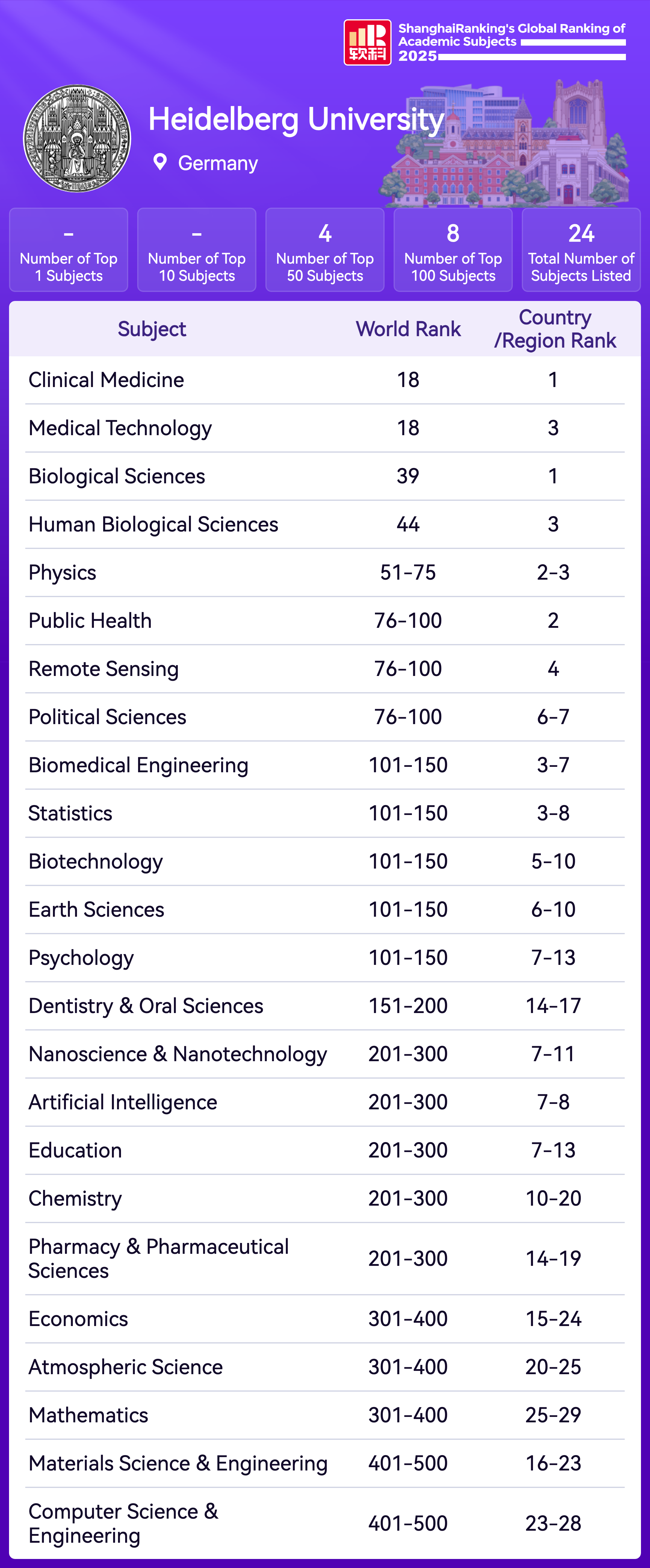 | Subject | Rank |