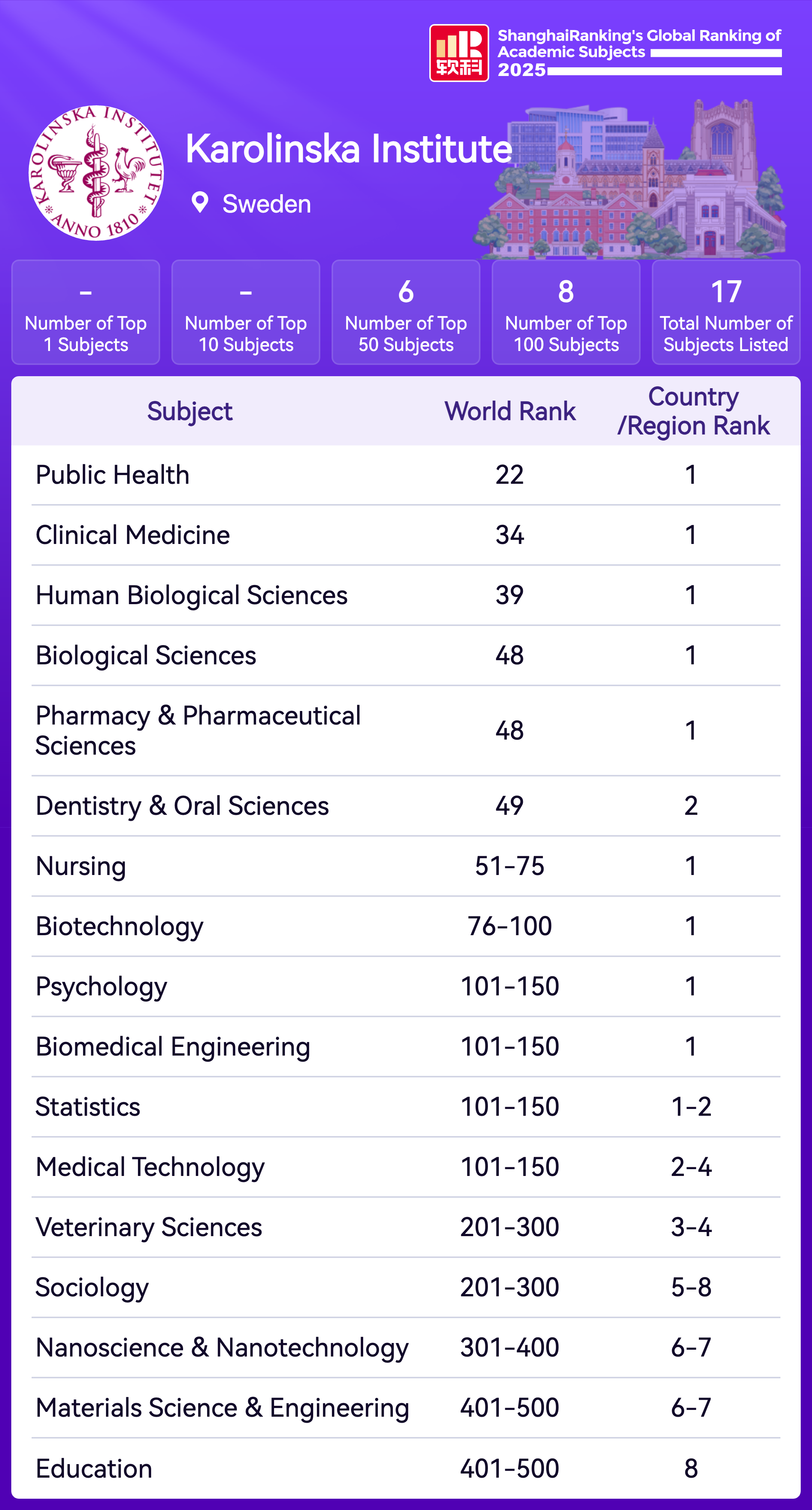 Karolinska Institutet is one of the world’s leading medical universities. Our vision is to advance knowledge about life and strive towards better health for all. Karolinska Institutet accounts for the single largest share of all academic medical research conducted in Sweden and offers the country’s broadest range of education in medicine and health sciences. The Nobel Assembly at Karolinska Institutet selects the Nobel laureates in Physiology or Medicine. Karolinska Institutet was founded by King Karl XIII in 1810 as an "academy for the training of skilled army surgeons". Today, Karolinska Institutet is a modern medical university and one of the foremost in the world. With our close relationship to the clinical milieu, a well established infrastructure and a stable financial situation, Karolinska Institutet has excellent prerequisites for sustaining high quality research and education.