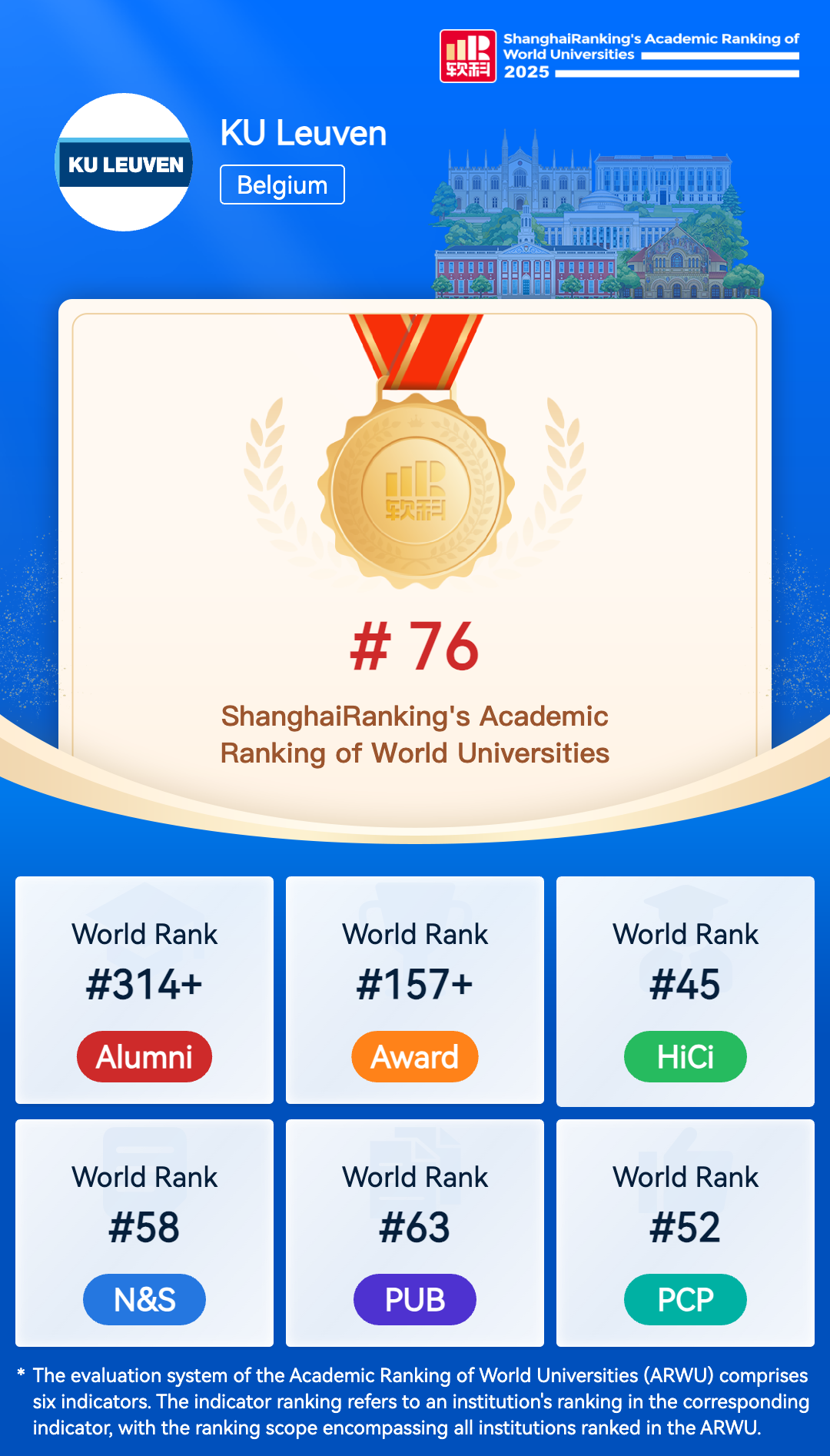 KU Leuven (University of Leuven), founded in 1425, is Belgium’s largest university. As a leading European research university, it offers a wide variety of academic programmes in Dutch and English (some 70 master programmes are taught in English), supported by high-quality interdisciplinary research, both in the university and in its internationally recognised university hospitals. More than 7300 researchers, from over 120 countries, participate in curiosity-driven and strategic frontier research, as well as targeted and demand-driven research. The university’s interaction and co-operation with external partners is very intense. As a comprehensive university, KU Leuven offers three-year bachelor and one- or two- year academic master’s programmes in almost all disciplines. The Leuven Doctoral Schools organise the international PhD tracks of over 6600 doctoral students. Leuven is a typical European and historical university city, with a multicultural and vibrant student community. Education KU Leuven offers a high quality, student oriented and international education. KU Leuven degrees offer a competitive advantage as they are highly valued throughout the world. Study programmes are research-based and organised within an innovative interdisciplinary framework, thus enabling students to adopt a critical, research and innovation-oriented attitude. The study programmes are flexible and use state-of-the-art ICT tools. The ECTS quality label guarantees that all credits obtained are transparent and fully transferable. The number of international students at KU Leuven has been rising steadily over the last few years, reaching 10000 FTE (more than 13 000 headcount) in 2022 with over 140 nationalities represented. Some 70 master programmes are taught in English, while PhD students are working in highly internationally composed research departments, mostly in a multilingual environment. Research KU Leuven has a rich tradition of learning and research for almost six centuries, which provided KU Leuven with its own dynamic international dimension. Research departments are part of global research communities, the leadership often taken by KU Leuven professors. KU Leuven is a charter member of the League of European Research Universities (comprising some 20 top European research universities). KU Leuven carries out fundamental and applied research in all academic disciplines with a clear international orientation. KU Leuven is currently by far the largest university in Belgium in terms of research funding and expenditure. It is also ranked among the top European universities: 926 PhD degrees in 2022-2023 (of which 50% for foreign PhD students), over 30.000 international peer-reviewed publications (2019-2021). The annual research expenditures in 2022 were around 650 million euro. More than one in three of our research staff is an international scholar. To strenghten international collaboration, KU Leuven has its own international research fellowship programme. KU Leuven participates in over 540 highly competitive European research projects (FP7, 2007-2013), ranking sixth in the league of HES institutions participating in FP7. These include 69 of the highly prestigious European Research Council grants (ERC). In Horizon 2020, KU Leuven currently has been approved 126 projects. Applied research is supported by the well-experienced KU Leuven Research & Development. Created in 1972 as one of the first technology transfer offices in Europe, LRD has a long tradition of promoting and supporting the transfer of knowledge and technology between the university and industry. LRD was rewarded the prestigious worldwide IPTEC Award for its achievements in technology transfer in 2008. LRD assists KU Leuven researchers in concluding over 1.000 new agreements anually for research collaboration projects. It also supports the commercialisation of intellectual property, which requires adequate protection and an appropriate transfer strategy to ensure that research innovation at KU Leuven finds its way into society. LRD stimulates the creation of spin-off companies by giving entrepreneurs the appropriate guidance and access to capital funding. LRD plays an important role in the knowledge-driven regional development and the construction of science parks and incubators in the Leuven region. Doctoral Schools The Leuven International Doctoral School Biomedical Sciences is a meeting place for dynamic and motivated people with a keen interest in human health and disease and with a passion for research. Doctoral students enter a challenging environment with state-of-the-art research facilities where they meet and interact with internationally recognised scientists who are dedicated to share their expertise. In joining one of the 11 thematic interdisciplinary programmes, doctoral researchers have the opportunity to participate in an integrated set of training facilities that broaden their scientific horizon and stimulate thinking beyond classical lines. After basically four years of intensive work, this training programme culminates in a new biomedical doctor with valuable intellectual and technical expertise, who also knows how to achieve personal goals and interact with fellow scientists and society as a whole. The Arenberg Doctoral School of Science, Engineering and Technology is the ideal hub for research areas, that are structured around four themes: Information, Matter, Life and Habitat. From infinity to atoms and from cells to people and man-made systems, the main research topics can be found in life sciences, computing and information science, environmental sustainability, human settlements, agriculture and food research, genomics and biomaterials, nanoscience and nanofabrication, advanced materials, energy and optimisation and engineering. The Leuven International Doctoral School for Humanities and Social Sciences is located in the beautiful mediaeval centre of Leuven. This school offers doctoral training programmes in 