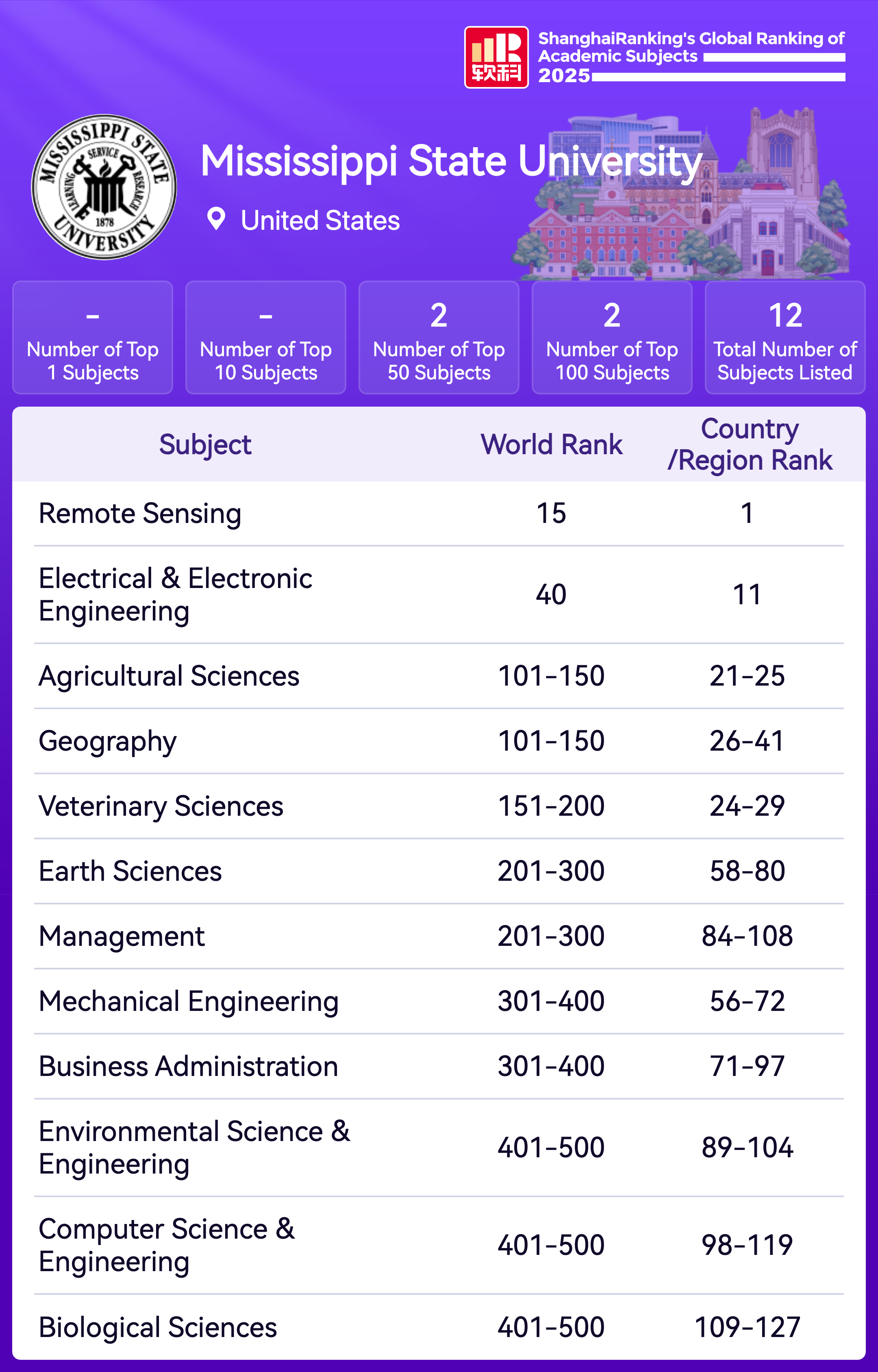 | Subject | Rank |
