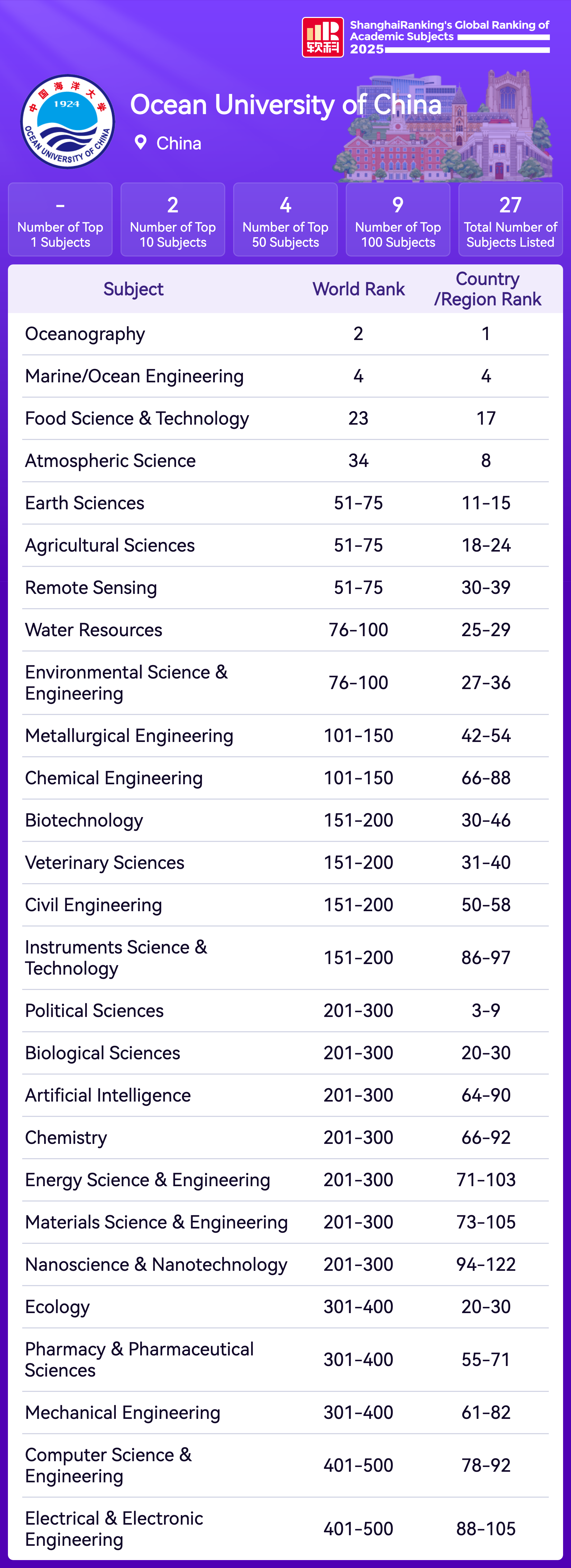 | Subject | Rank |