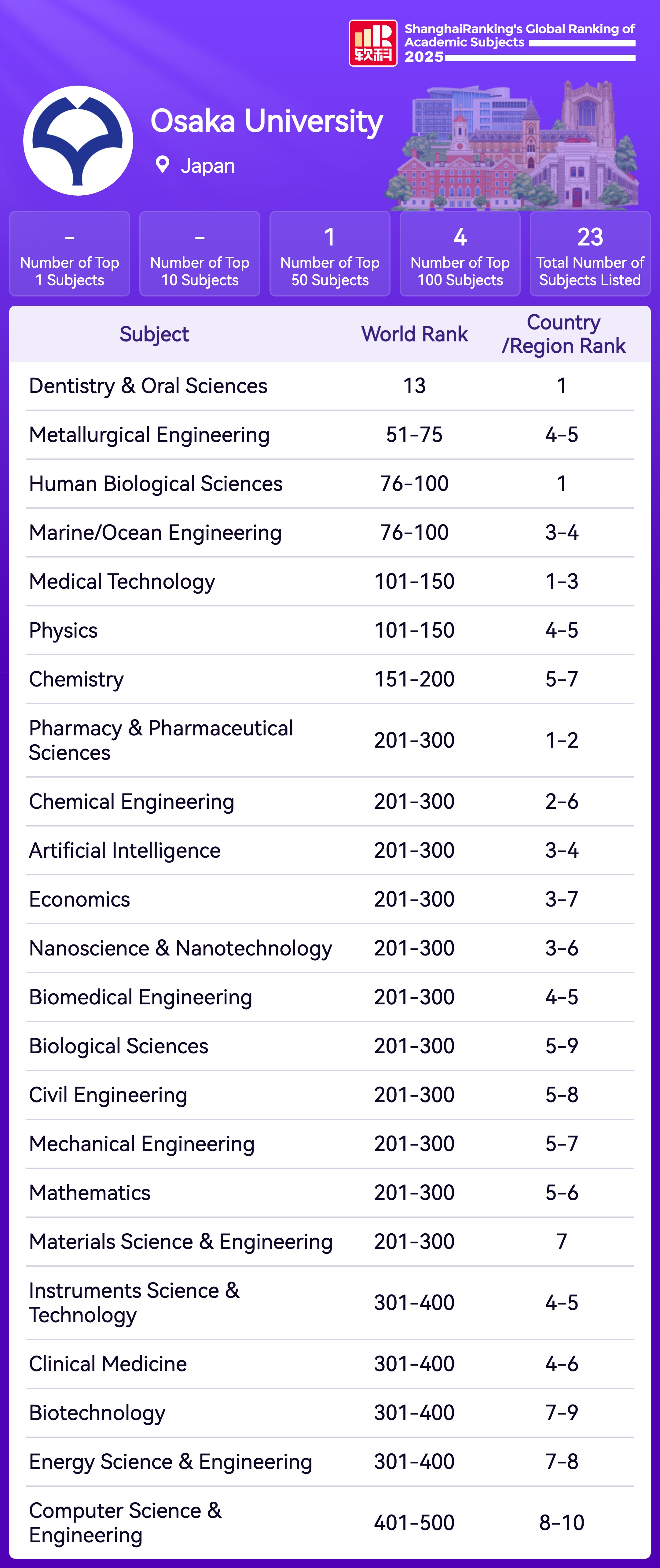 Rooted in Kaitokudo and Tekijuku, Osaka University (OU) was founded in 1931 through the passion of the people of Osaka. Since this beginning it has developed into establishment of scholarships and education, with the motto, “Live Locally, Glow Globally”. Today, Osaka University, with the incorporation of Osaka University of Foreign Studies, is a comprehensive research university, comprised of 11 schools, 15 graduate schools, four libraries, two university hospitals, 21 research institutes and facilities. Furthermore, we have four oversea centers in Berkeley (USA), Groningen (The Netherlands), Bangkok (Thailand) and Shanghai (China). The strengths and features of Osaka University are that it is one of the most innovative universities in Japan with outstanding research in many fields. [Cutting-edge and distinctive research in OU] Immunology, Integrated Frontier Research for Medical Science, Quantum Information and Quantum Biology, Symbiotic Intelligent Systems Research etc. In addition to the excellence of research, Osaka University has strongly promoted university-industry co-creation. Osaka University accepts the highest amount of joint research funds from industries of all universities in Japan. There are about 100 research laboratories and units sponsored by companies on campus.