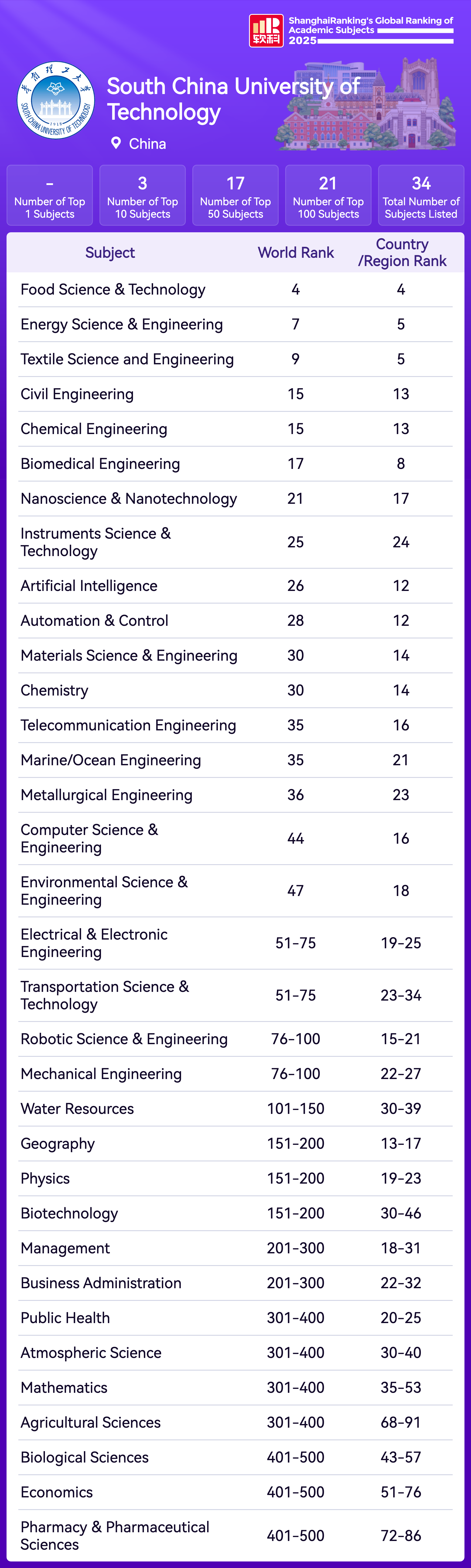 South China University of Technology (SCUT) is one of China's key universities operating under the direct leadership of the State Ministry of Education. The university, which has a total area of 294 hectares, is situated in Guangzhou, a southern metropolitan in China. The university has two campuses: The Wushan Campus and Guangzhou Higher Education Mega Center Campus. South China University of Technology (SCUT), formerly known as the South China Institute of Technology, was established in 1952. In 1960, SCUT was awarded ranked among the key universities of China. In 1981, it was authorized by the State Council to confer doctor degrees and master degrees, and was among the first universities in the country to do so. In 1995, it was selected as one of the universities into which China will make significant investment in the 21st century. In 1999, it was rated "excellent" during the Undergraduate Teaching Assessment, and was among the first "Excellent Universities of Undergraduate Education" in the country. In the same year, a national science park was established with the authorization of State Ministry of Technology and State Ministry of Education. In 2000, Graduate School was authorized to be established. In 2001, the new cooperative construction of State Ministry of Education and Guangdong Province was implemented in SCUT and it was listed among the top universities in the country. After 60 years of development, SCUT has become a multidisciplinary university focusing on engineering, combined with science, also promoting well coordinated development of management, economics, humanities and law. With precise knowledge pursuit, the school eminent spirit of comity and factualism has come into being, which help cultivating exclusive technological and management talents that are welcomed to the society. In recent years, the demand of graduate students has exceeded their supply. The employment rate of its undergraduates in 2013 has reached 99.33% and that of its graduates 99.48%. Since its founding, the university has cultivated for the country over 290,000 graduates at all levels. A large number of school fellows have become technological mainstays, distinguished entrepreneurs or leading cadres. Facing the new century, SCUT will take discipline constructions as prerequisite, regard individual as its roots, consider talent cultivation as its ultimate aim and highlight technological pursuit. SCUT intends to enlarge and extend its scale and realize the coordinated development of its scale, structure, quality and benefit. SCUT accelerates its education reform by gearing the university from multidiscipline-oriented to integration-oriented, from teaching research-oriented to research-oriented, and from partial open form to completely open form, so as to build SCUT into a top-ranking State university and a famous world-class university.