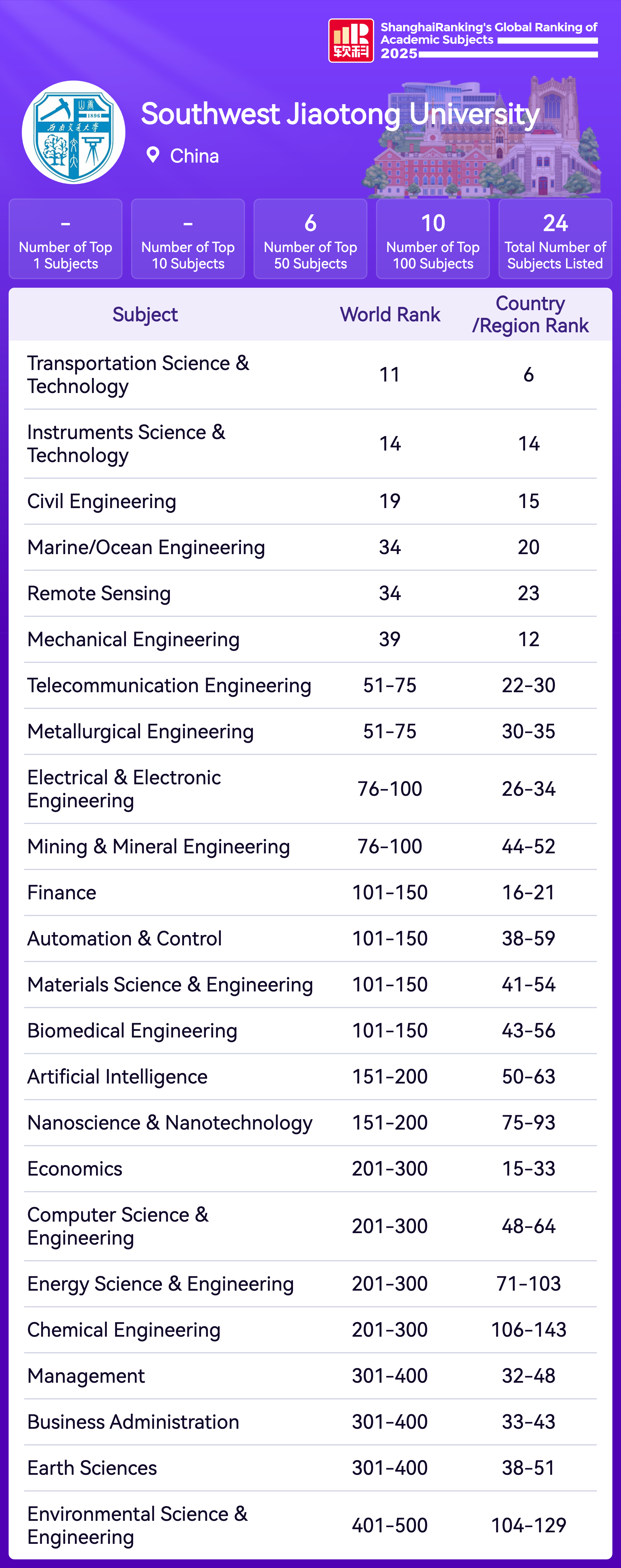 The Academic Ranking of World Universities (ARWU) is recognized as the precursor of global university rankings and the most trustworthy one. ARWU presents the world's top 1000 research universities annually based on transparent methodology and objective third-party data.