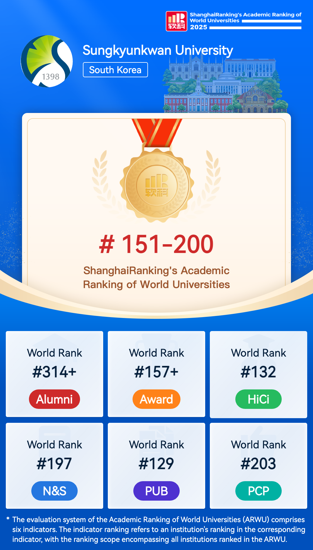 Sungkyunkwan University (SKKU) is a world-class institution of higher education that has existed for more than six centuries. Since its founding as a royal Confucian academy in 1398 at the dawn of the Joseon Dynasty (1392-1910), SKKU has demonstrated strong academic leadership. Contemporary SKKU has embraced globalization and emerged as a leading university in Asia and the world. In fact, SKKU actively encourages international collaboration through exchange of faculty and students, and the development of cutting-edge research and educational programs with its global partners. The name “Sungkyunkwan” is synonymous with both tradition and innovation. The literal meaning of the university’s name is, “An institution for building a harmonious society of enlightened human beings.” The founding philosophy of Sungkyunkwan was needed in the past just as much as it is needed in today’s technologically advanced society. The university’s 4,706 faculty members are committed to quality teaching and research; offering students a challenging environment for intellectual and personal growth. As the oldest university in East Asia and Korea’s top higher educational institution for centuries, Sungkyunkwan generated countless graduates that shaped the nation’s history and culture. SKKU's motto, “Su-Gi-Chi-In”, which means “Benevolence, Righteousness, Propriety, Wisdom”, teaches that the university’s students should strive to improve themselves and contribute to society. This ideology is the fundamental principle by which the university has fostered so many influential leaders, thus contributing to the development of Korean society. SKKU aims to educate future global leaders equipped with these essential values so that it will further contribute to the advancement of all of humanity. Sungkyunkwan University continuously integrates its founding philosophy with modern technology in order to cultivate talented individuals capable of leading society into a brighter future.
