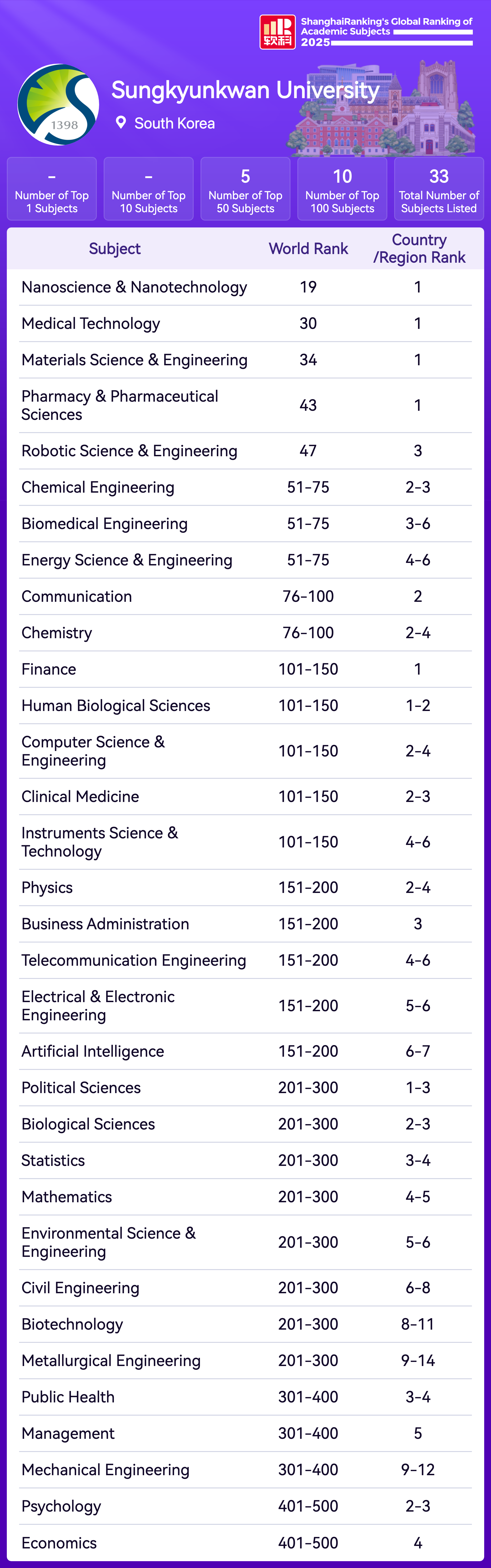 | Subject | Rank |