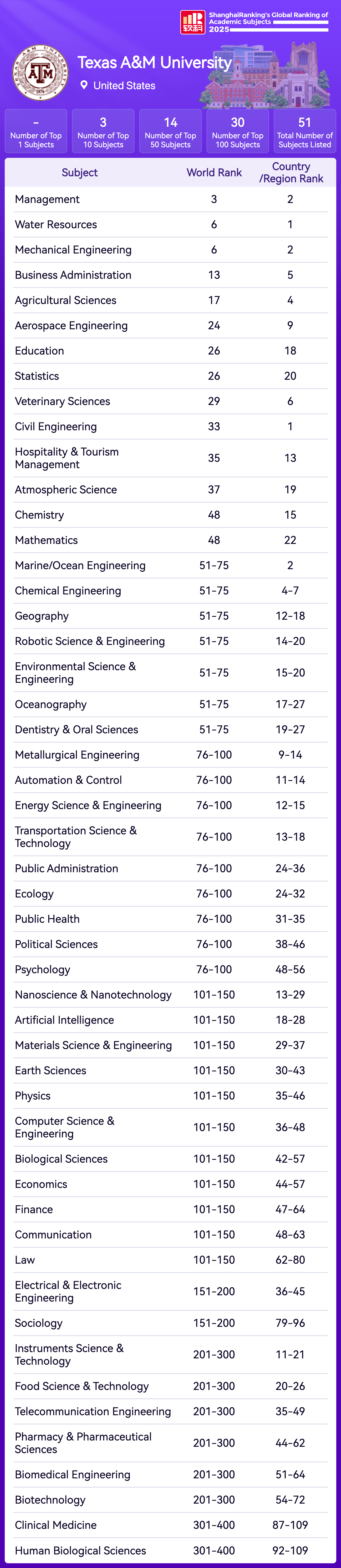 Scope. The flagship of the 18-member Texas A&M University System, Texas A&M University is a tier one research institution, one of only 62 invited members of the Association of American Universities, and one of only 17 holding the federal land-, sea- , and space-grant designation. The state’s first public institution of higher learning, Texas A&M has strategically grown into one of the nation’s most diverse and comprehensive universities, offering nearly 200 undergraduate majors and nearly 245 graduate degree programs, as well as professional degrees in law, veterinary medicine, medicine, dentistry, nursing, pharmacy, and public health. With a student body of more than 68,600 (with about 63,000 on the College Station campus), Texas A&M ranks among the nation’s largest universities. It has a maritime branch campus in Galveston, Texas, and an engineering branch campus in Doha, Qatar, and centers in Mexico and Costa Rica. Academic Excellence. Texas A&M is known for providing a world-class education at a reasonable cost. Twenty-six percent of the student body are the first in their family to attend college, and nearly 60 percent are in the top 10 percent of their high school graduating class. Texas A&M ranks second among public universities nationally for enrollment of National Merit Scholars. It consistently ranks among the top 10 universities in the number of science and engineering doctorates awarded, and in the top 20 in the number of doctoral degrees awarded to minorities. Graduates excel in the workforce. Texas A&M ranks in the top 10 nationally for graduates who get well-paid jobs, and is first in Texas (and among the top nationally) for early- and mid-career earnings of graduates. Texas A&M also ranks first (along with other institutions) in the number of Fortune 500 CEOs. Other recent rankings: #1 among all schools nationally in “Great Schools You Can Actually Get Into” (Money) #1 among public universities nationally in the number of students (more than 3,900) engaging in study, research, internship, or volunteer experiences abroad (in more than 150 countries) each year (Institute of International Education) #2 among public universities nationally in “Best Value Schools” (U.S. 51Թ & World Report) #2 among public universities nationally in “research, service, social mobility and contributions to society” (Washington Monthly) Research. Texas A&M is one of the world’s leading research institutions, with research expenditures of more than $892 million in fiscal year 2016. The National Science Foundation ranks Texas A&M 16th in the nation for total research and development expenditures for fiscal year 2015, at more than $866 million, and sixth in the nation in NSF funding. Texas A&M researchers conduct studies on every continent, with more than 600 initiatives underway in more than 80 countries. Texas A&M faculty include three Nobel laureates and 53 members of the National Academy of Sciences, National Academy of Engineering, National Academy of Medicine, American Academy of Arts and Sciences, American Law Institute, or American Academy of Nursing. Texas A&M faculty and students work on practical solutions to real-world challenges, including sustainable and efficient energy, designing and protecting the environment, improving economic development, and enhancing human, animal, and plant health. Examples include the following: College of Veterinary Medicine & Biomedical Sciences, the only veterinary college in Texas, conducts advanced research in signature areas of biomedical genomics, cardiovascular sciences, infectious diseases, neuroscience, reproductive biology, toxicology, and veterinary clinical research. The College is pioneering the study of human cancer using the Texas A&M-Texas Veterinary Cancer Registry for pets diagnosed with cancer, the model for the National Veterinary Cancer Registry. Giant Magellan Telescope Organization (of which Texas A&M is one of 11 international partners) is constructing the largest optical telescope in the world, scheduled to become fully operational by 2024, in Chile. International Ocean Discovery Program (IODP) is an international marine research collaboration dedicated to advancing scientific understanding of the Earth through drilling, coring, and monitoring the subsea floor. The research enabled by IODP improves our understanding of climate and ocean conditions, the origins of ancient life, the risks posed by geohazards, and the structure and processes of Earth’s tectonic plates and uppermost mantle. IODP began in 2013 and builds on four previous scientific ocean drilling programs that represent the longest-running and most successful international Earth science collaboration. Center for Innovation in Advanced Development and Manufacturing, founded in 2012 on an initial $285.6 million public-private partnership with the U.S. Department of Health and Human Services, enhances the nation’s emergency preparedness against emerging infectious diseases, including pandemic influenza and chemical, biological, radiological, and nuclear threats. Center researchers accelerate vaccines and other medical products through pre-clinical and clinical development and produce them in response to pandemics or other national emergencies. Cyclotron Institute, one of only four such university-based, U.S. Department of Energy-funded laboratories, is home to one of a handful of K500 superconducting cyclotrons worldwide, with an unmatched capability for research in nuclear physics and nuclear chemistry. It also serves as a technical support base for collaborative research programs at other major national and international accelerator facilities. Institute for Infectious Animal Diseases collaborates with agricultural industries, major research universities, the national laboratories, and the World Organization for Animal Health to provide early detection, diagnosis, prevention, response, and recovery as needed to protect the U.S. food supply, through