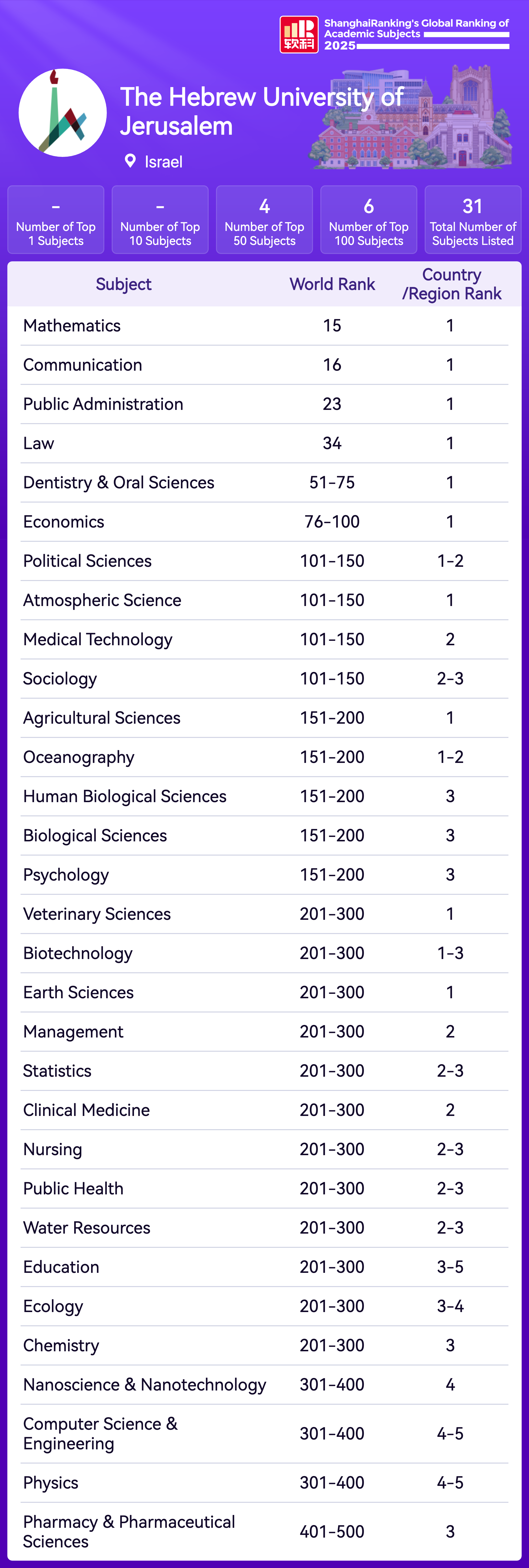 The Hebrew University of Jerusalem, founded in 1918 and opened officially in 1925, is Israel’s premier university as well as its leading research institution. It is ranked first among Israeli universities in international rankings. The Hebrew University’s leading role in the scientific and scholarly communities has made it one of the best research universities worldwide, where science and knowledge are developed for the benefit of people everywhere in an atmosphere free of discrimination and prejudice. . It stresses excellence and offers a wide array of study opportunities in the humanities, social sciences, exact sciences and medicine. The university encourages multi-disciplinary activities in Israel and overseas and serves as a bridge between academic research and its social and industrial applications. The Hebrew University has set as its goals the training of public, scientific, educational and professional leadership; the preservation of and research into Jewish, cultural, spiritual and intellectual traditions; and the expansion of the boundaries of knowledge for the benefit of all mankind. Excellence The Hebrew University strives for excellence, an integral element in its academic life. Its outstanding scholars have achieved impressive breakthroughs in a variety of disciplines, and it is fourth in Europe in obtaining the European Union’s Research Council competitive grants to young researchers. One-third of all competitive research grants awarded in Israel are won by Hebrew University scholars. University academicians publish frequently in prestigious scientific journals, and their research has garnered outstanding awards in Israel and worldwide, including the Nobel Prize, the Fields Medal and the Israel Prize. Most PhD holders in Israel learned their degrees at the Hebrew University, and our alumni hold key positions in academia, public service and the business sector. Life on campus In Jerusalem, one of the most beautiful and historic cities in the world, the universy maintains three campuses: the Mount Scopus campus for the humanities and social sciences; the Edmond J. Safra Campus for exact sciences; and the Ein Karem Campus for medical sciences. Its other campuses are the Rehovot faculty for agriculture, food, veterinary medicine and environmental sciences; the veterinary hospital in Beit Dagan; and the Interuniversity Institute for Marine Sciences in Eilat. The university boasts three sports facilities which are among the most advanced in the country, 11 libraries, five computer centers, 6,000 dormitory beds, and dozens of student activity groups focusing on politics, society, the environment and more. International involvement Out of the top 500 universities rated by the Shanghai Academic Ranking of World Universities, the HebrewUniversity ranks 57th. Its student body numbers 23,000 students fromIsraeland 65 other countries. It is actively engaged in international cooperation for research and teaching. It has signed 150 agreements for joint projects with other universities and 25 agreements for student exchanges with 14 countries. Its faculty members include young scholars who have returned toIsraelfrom advanced studies at leading institutions of higher education throughout the world. The Hebrew University has been a leader in bringing about changes in the world community in agriculture, environmental quality and public health. Students from developing countries have carried out advanced studies at the Hebrew University and returned to their home countries in order to apply the knowledge they gained and to improve the level of services provided to their compatriots. The university’s international study programs include: An international Master of Public Health program that, since its founding, has awarded degrees to more than 700 students from 90 developing countries as well as from North America and Europe; master’s programs at the Robert H. Smith Faculty of Agriculture, Food and Environment for students from developing countries in nutrition, crops and animal sciences, plus international courses and in-service training in such areas of applied science as “green” agriculture in an age of climate change and biotechnology in world agriculture under environmental change; courses preparing students for work with international aid organizations; and a Ph.D. program in environmental studies in cooperation with Nanyang Technological University in Singapore. The university also offers 90 courses for the study of 27 languages. The university’s Rothberg International School offers programs for overseas students. Among its alumni are actress Natalie Portman, journalist Thomas Friedman, and formerUSambassadors to Israel Martin Indyk and Daniel Kurtzer. Patents and innovations The Yissum Research Development Company of the Hebrew University is 15thin the world in the number of patents registered. Yissum is responsible for marketing the technology and scientific know-how generated by Hebrew University researchers and students. To date it has registered over 7,000 patents for 2,023 inventions; more than 600 of these patents have been commercialized, and products manufactured on the basis of the patents are sold at over $2 billion a year. Yissum’s portfolio boasts 72 companies established on the basis of inventions developed by Hebrew University researchers. Particularly outstanding developments include the drugs Exelon used to treat Alzheimer’s patients and Doxil for use in ovarian cancer; a cherry tomato variety with a particularly long and excellent shelf life; and Mobileye, a “computer-vision” vehicle collision warning and driver safety system. FACTS: 8 Nobel Prize winners 1 Fields Medal winner in mathematics 263 Israel Prize winners Among its founders: Albert Einstein, Martin Buber, Chaim Nahman Bialik, Chaim Weizmann