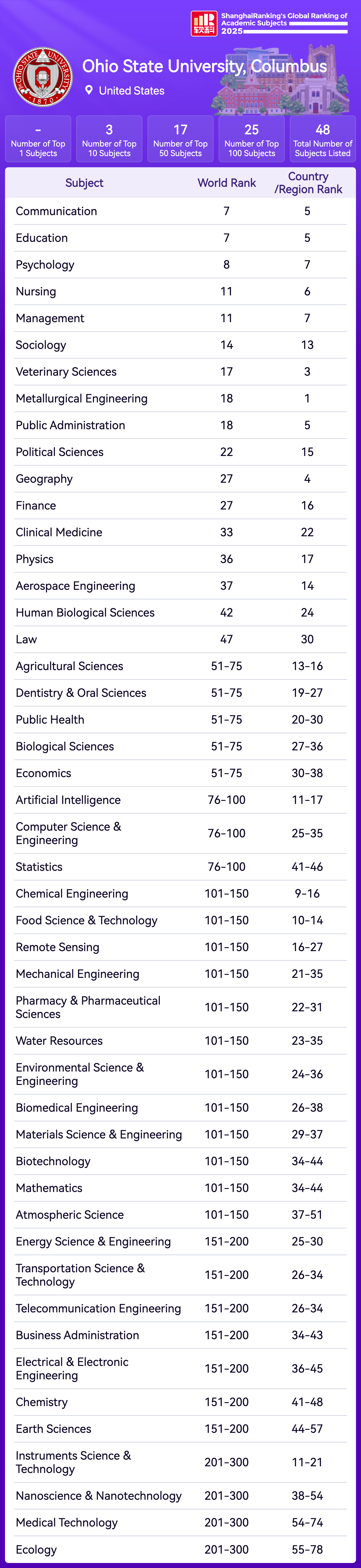 Since 1870, The Ohio State University has been the stage for academic achievement and a laboratory for innovation. The university's main campus in Columbus, Ohio, is one of America's largest and most comprehensive. As Ohio's top university and one of the top-20 public universities in the United States, Ohio State is further recognized for its top-rated academic medical center and its premier cancer hospital and research center. Big university, big opportunities Ohio State offers more than 200 majors (from accounting to zoology) and nearly 500 areas of specialization. Unparalleled opportunities in and out of the classroom help students discover their potential and prepare for successful careers, further studies and other exciting futures. A top research university Students benefit from a scholarly environment in which research inspires and informs teaching. Ohio State ranks 12th among public research universities in the United States and is fourth in industry-sponsored research. The university’s facilities, expert faculty and ties to industry result in particularly high rankings for Ohio State’s programs in the biological, medical and physical sciences, as well as in technology and engineering. Experience Columbus Columbus is Ohio’s state capital and largest city. It offers a vibrant blend of arts and culture; inspired culinary, fashion, music and entertainment scenes; exciting collegiate and professional sports; and an open, entrepreneurial spirit. The city has one of the strongest economies in the United States and is consistently named a great place to live and work. Ohio State students can pursue internships in a wide range of industries, including research and technology, healthcare, government, and service.