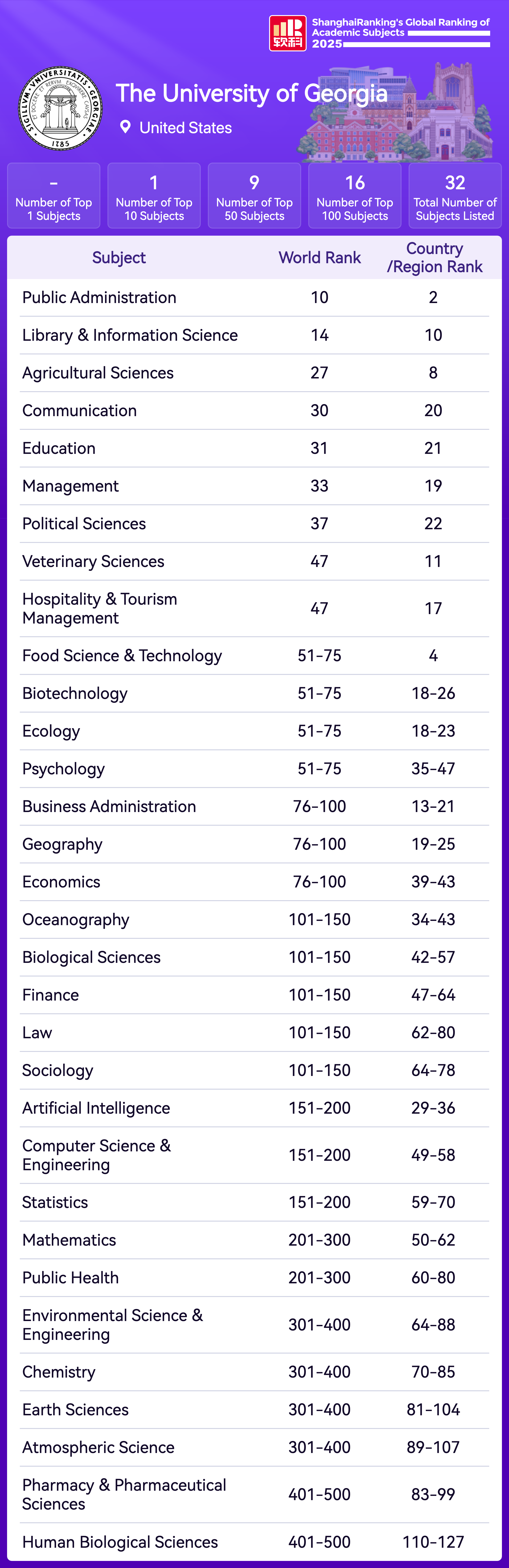 | Subject | Rank |