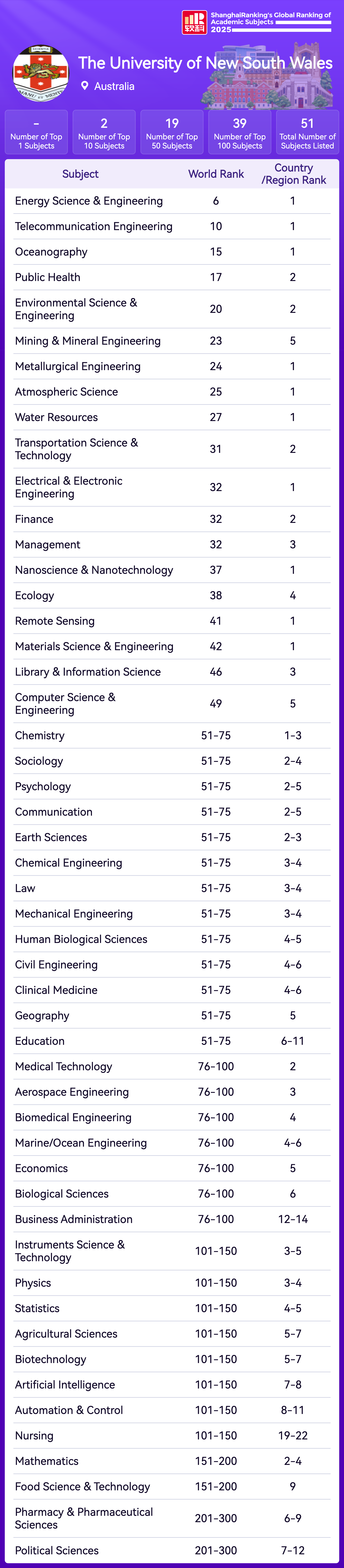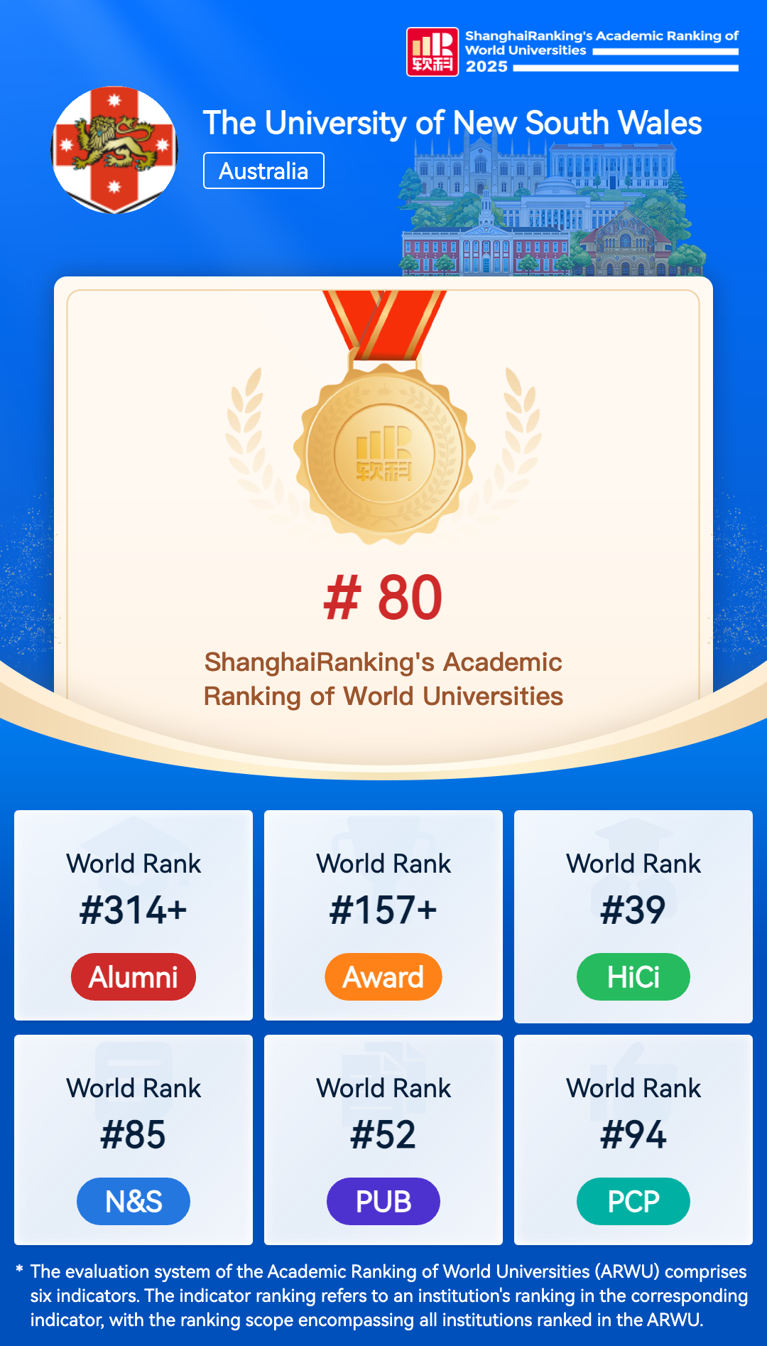UNSW Sydney (The University of New South Wales) is one of the world’s leading research and teaching universities. Established in 1949, we are home to more than 60,000 students from over 130 countries and an alumni community of 300,000 that spans the world. UNSW is committed to pioneering research and preparing the next generation of talented global citizens for career success. We are empowering our students to discover opportunities that will shape their future with our world-class undergraduate, postgraduate and research programs. We also offer Australia's most comprehensive university entrepreneurship program. Educational excellence UNSW was ranked among the top 20 global universities by the 2024 QS World University Rankings. Our commitment to be a leading learning and teaching university is supported by innovative courses and teaching strategies as well as state-of-the-art facilities and technology. Research quality UNSW’s research community is more than 8000 strong. Our researchers, centres and institutes have extensive international research collaborations and partnerships. We lead the world in solar power, sustainable materials and quantum computing and are internationally renowned in many other fields. Our research informs policy and expert commentary on key issues facing society, ranging from human rights and constitutional recognition of Indigenous Australians to public health and population ageing. Innovation and engagement We’re focused on building a creative and resourceful generation of forward-thinking, wealth-creating, environmentally conscious and socially engaged individuals. The University has a proud tradition of sustained innovation, focusing on areas critical to our future – from climate change and renewable energies to lifesaving medical treatments and breakthrough technologies. Globally connected We are connected to more than 200 partner universities in 39 countries. UNSW is a member of the Group of Eight (Go8) in Australia, the Association of Pacific Rim Universities (APRU), Universitas 21 (U21), and the Global Alliance of Technological Universities (GlobalTech) where we were the only Australian university selected to join. This network contributes to a steady flow of students, researchers and academics on campus, creating a truly global learning environment. Our campuses UNSW's main campus is located on a 38-hectare site at Kensington, seven kilometres from the centre of Sydney. Our other campuses are UNSW Art & Design (Paddington) and UNSW Canberra at ADFA (Australian Defence Force Academy). Facebook Twitter Instagram WeChat LinkedIn YouTube TikTok Weibo