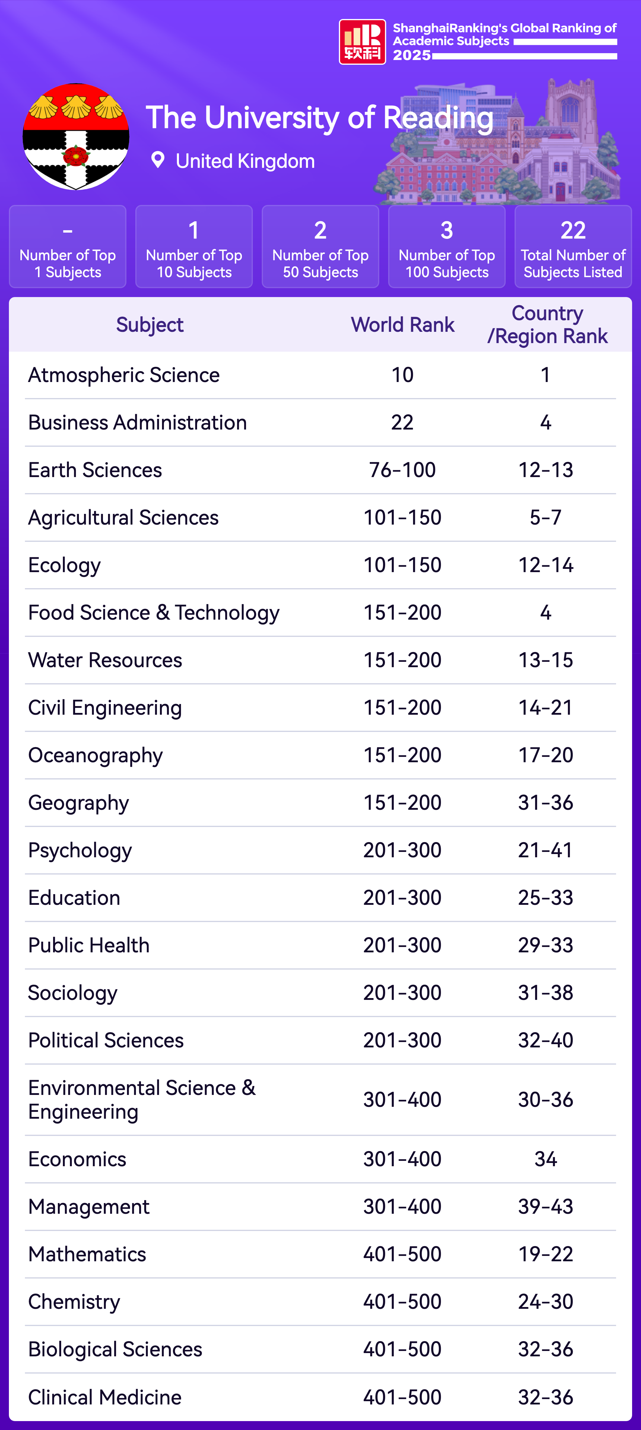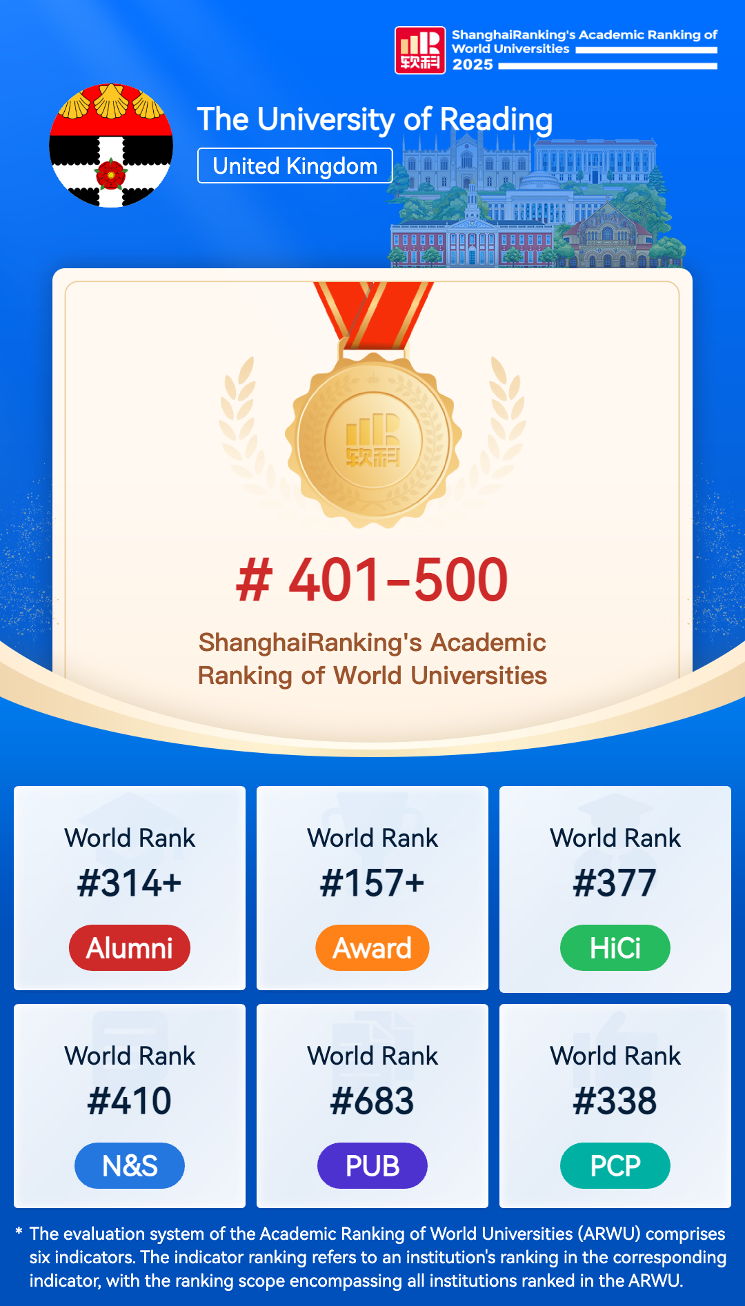 Introduction The University of Reading is one of the UK's leading research-intensive universities and is in the top 1% worldwide (QS World University Rankings). We offer an outstanding experience for all of our students – inspiring students academically and equipping everyone for their next step after graduation, whether it be work or further study. We're a tight, bustling community where our students can make a big impact. We have high expectations of everyone, and help them reach their full potential. We offer over 200 flexible courses, teaching of the highest standard, and a wide range of opportunities, from studying abroad to learning languages to undertaking work placements. People often comment on the friendly and vibrant atmosphere here at Reading. It’s a place to meet new people from around the world and to build friendships that last a lifetime. There is a huge range of societies, sports clubs and volunteering opportunities to get involved with, alongside a busy social calendar organised by Reading University Students’ Union. From the beautiful campus the town centre is only a short walk away, and London is just half an hour by train. The possibilities are limitless. Vital Statistics About the University of Reading: • 8 subjects listed in the UK top 10 (Guardian University Guide 2017) • Over 150 years of history, with origins as a University of Oxford extension college • 98% of research rated of international standing/quality (REF 2014) • Our beautiful 130-hectare main campus, Whiteknights, has a Green Flag Award and was voted top campus space in the UK • 17,000 students from over 140 countries • 89% student satisfaction (National Student Survey 2015) • 94% of graduates in work or further study six months after graduating (Destination of Leavers from Higher Education Survey 2014/15) • Three quarters of graduates in professional or managerial jobs just six months after graduating - well above average