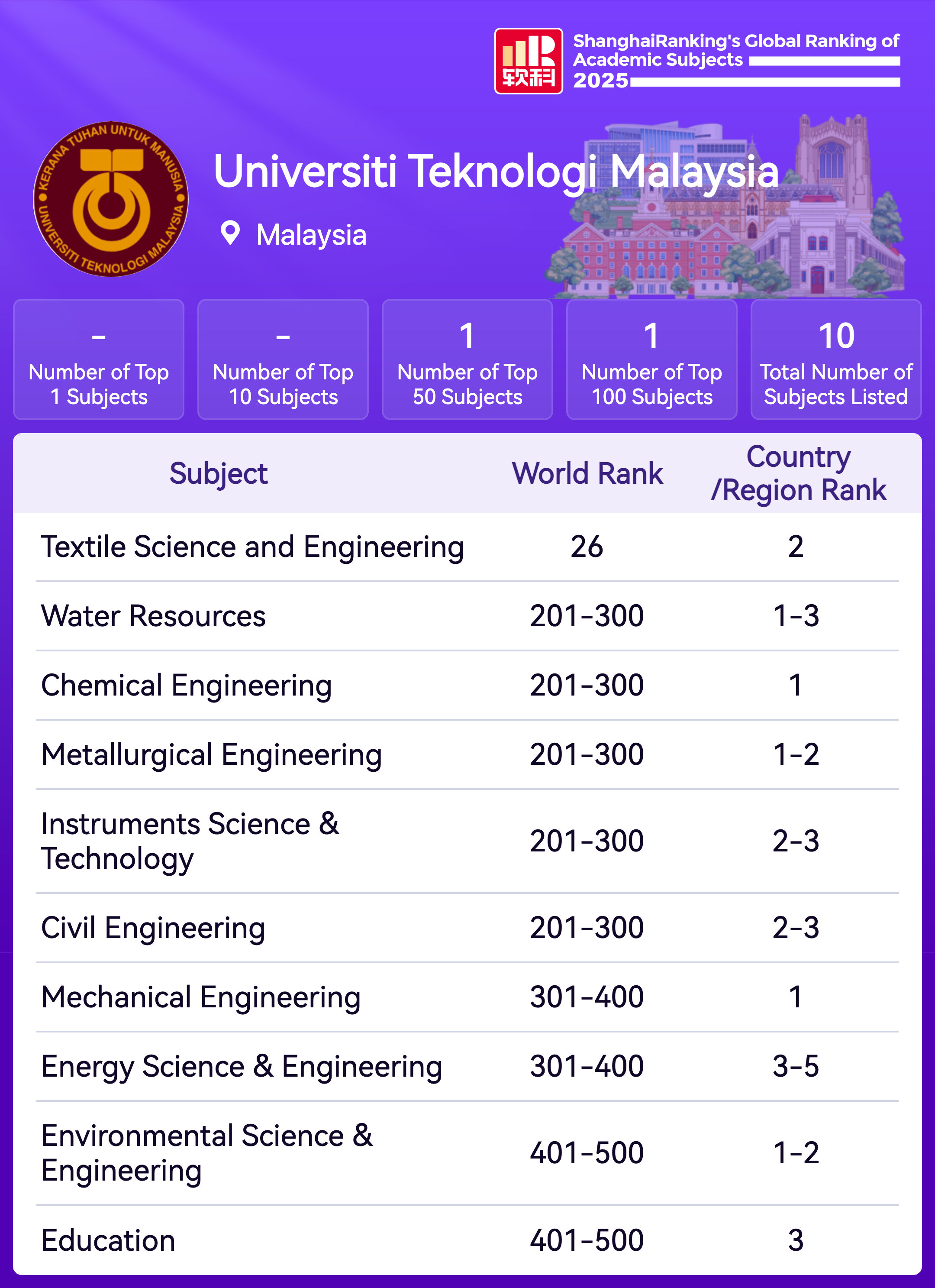 It is renowned for being at the forefront of engineering and technological knowledge and expertise, contributing to the technical and professional workforce of the nation since its inception in 1904. UTM has also established a reputation for cutting-edge research undertakings and innovative education, proven by becoming the two-time winner of the National Intellectual Property Award for organization category.Its mission is to lead in the development of creative and innovative human capital and advanced technologies that will contribute to the nation’s wealth creation.