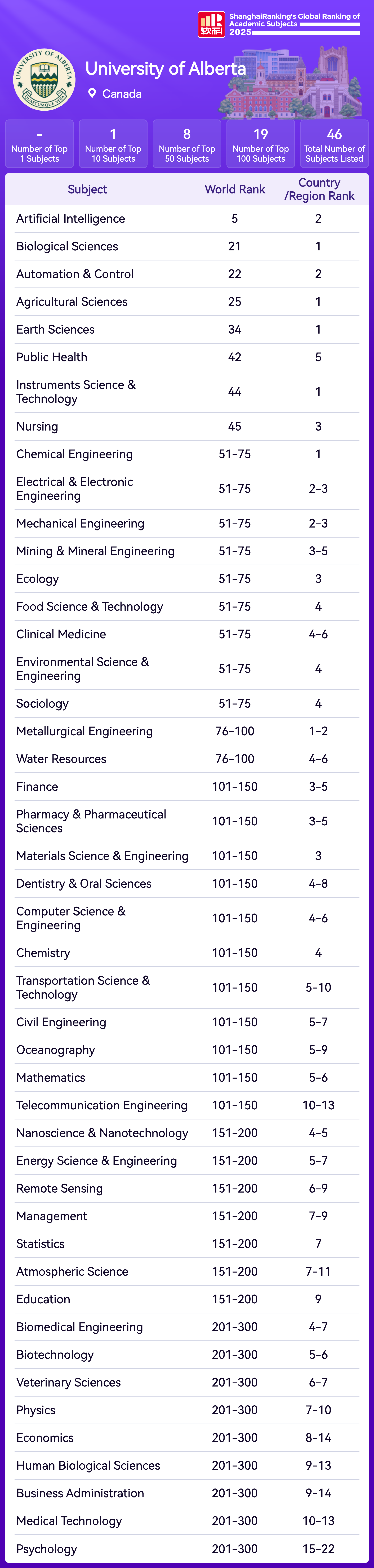 | Subject | Rank |