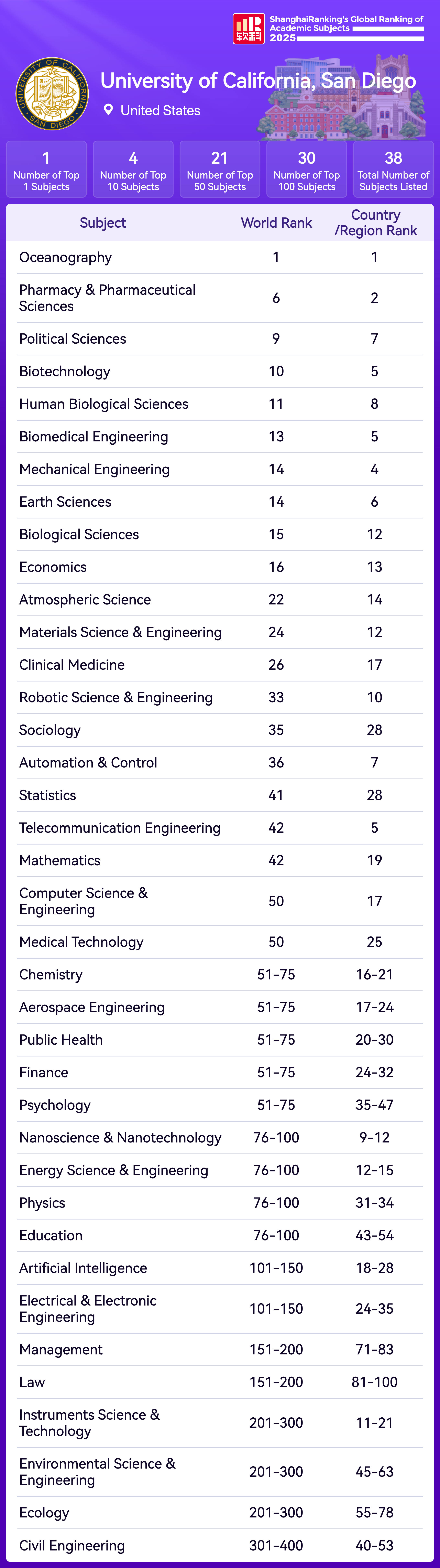 UC San Diego is an academic powerhouse and economic engine, recognized as one of the top 10 public U.S. universities and ranked number one in the nation for public service by the Washington Monthly. Our location is unparalleled, our impact unmistakable. UC San Diego shapes minds, changes lives, launches industries and builds the future...one student, one discovery and one achievement at a time UC San Diego is dedicated to the advancement of knowledge through excellence in education and research at the undergraduate, graduate, professional school and postdoctoral levels. The campus is committed to community engagement, public service and industry partnerships in order to advance the health and well-being of our region, state, nation and the world. Our academic community of world-renowned faculty, bright students and dedicated staff is characterized by a culture of interdisciplinary collaboration and innovation which spans the globe. To foster the best possible working and learning environment, our university strives to maintain a climate of fairness, cooperation, and professionalism, which is embodied in our campus Principles of Community. UC San Diego embraces diversity, equity, and inclusion as essential ingredients of academic excellence in higher education. UC San Diego’s rich academic portfolio includes six undergraduate colleges and five academic divisions. Five graduate and professional schools include the Scripps Institution of Oceanography, the School of Medicine, The Rady School of Management, the Skaggs School of Pharmacy and Pharmaceutical Sciences, and the School of Global Policy Studies. The university’s award-winning scholars are experts at the forefront of their fields with an impressive track record for achieving scientific, medical and technological breakthroughs, and include Nobel laureates, Fields medalists, Puliter and Kyoto Prize winners, Tony and Academy Award winners, and MacArthur Fellows.