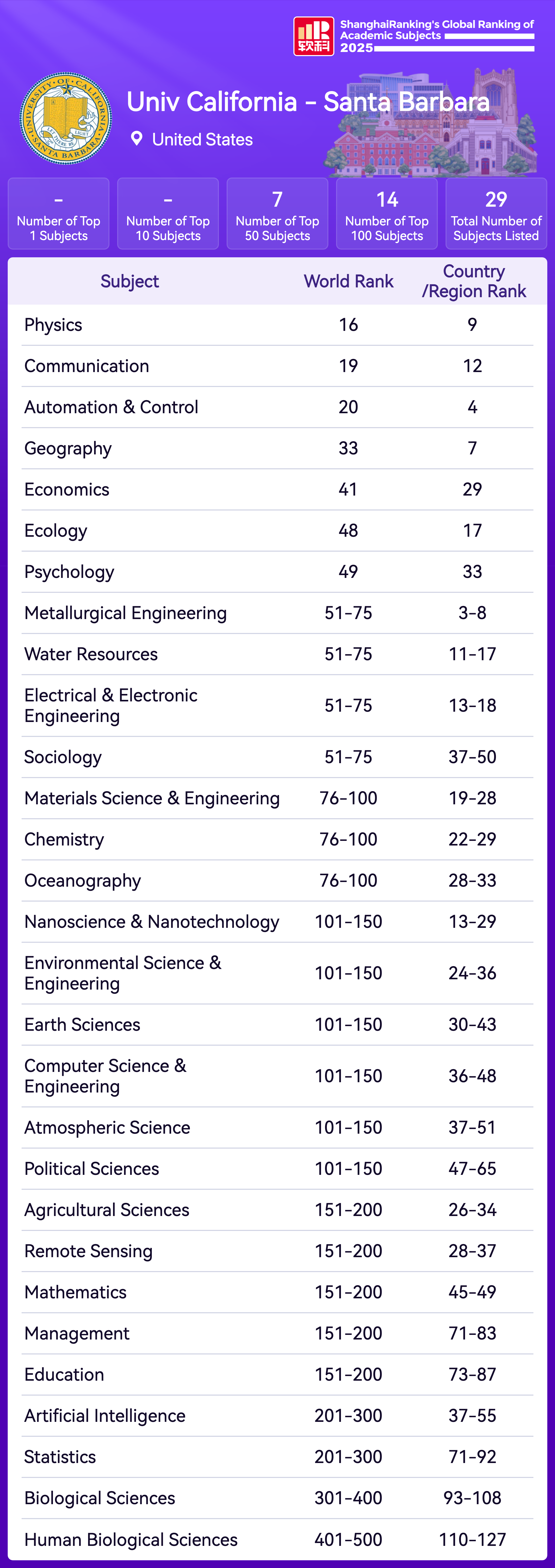 | Subject | Rank |