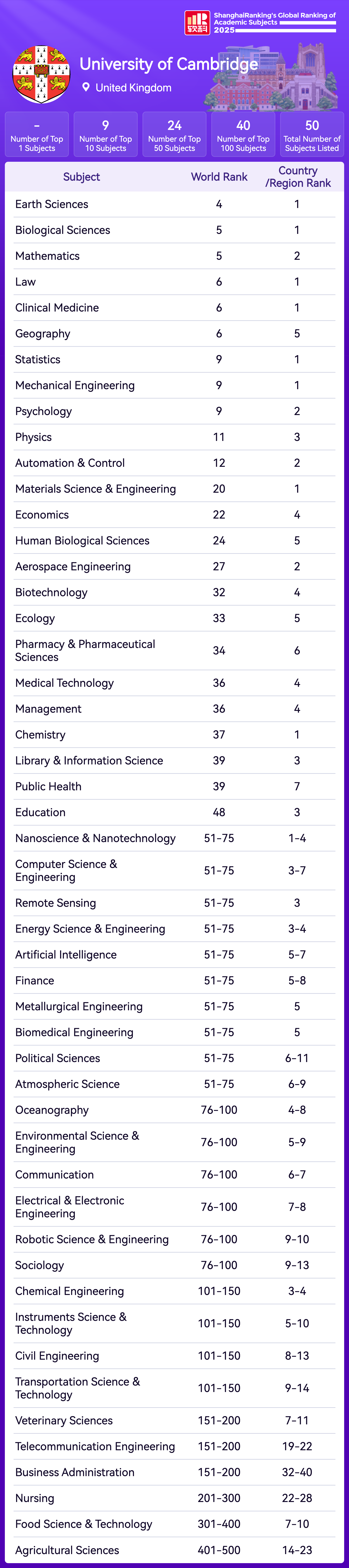 | Subject | Rank |