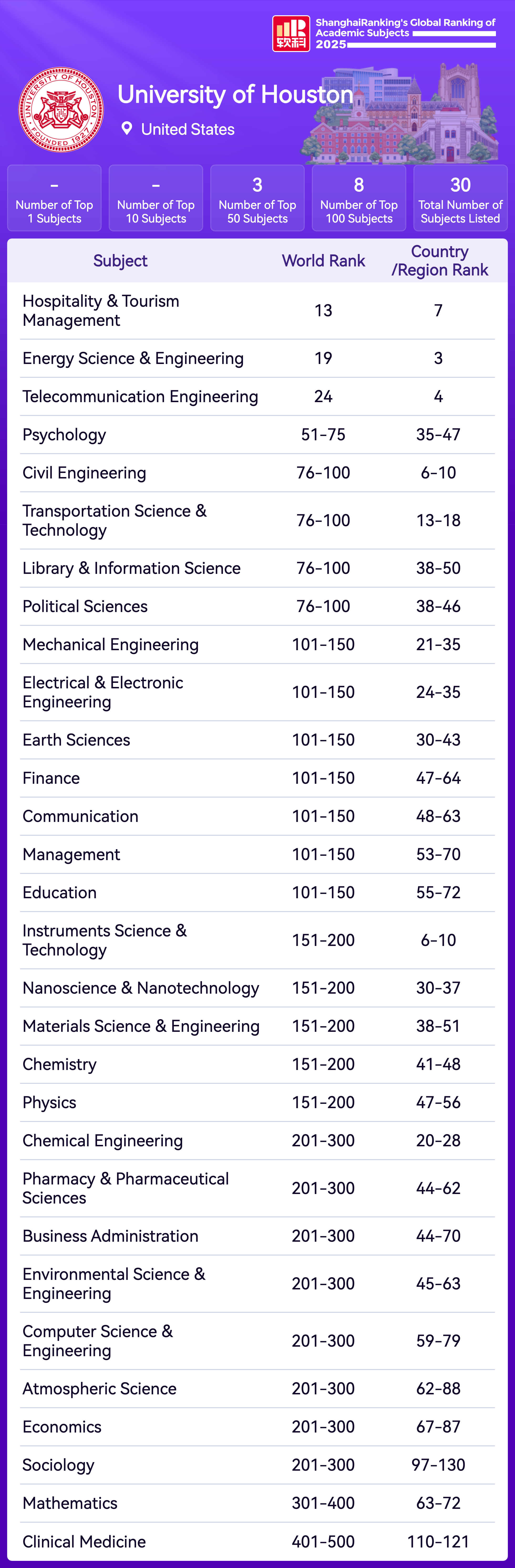 | Subject | Rank |
