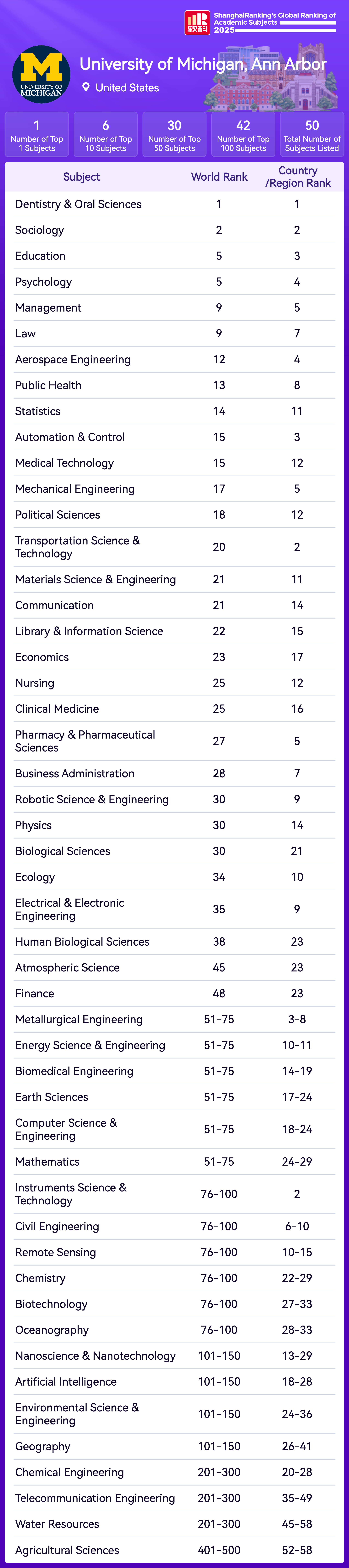 | Subject | Rank |