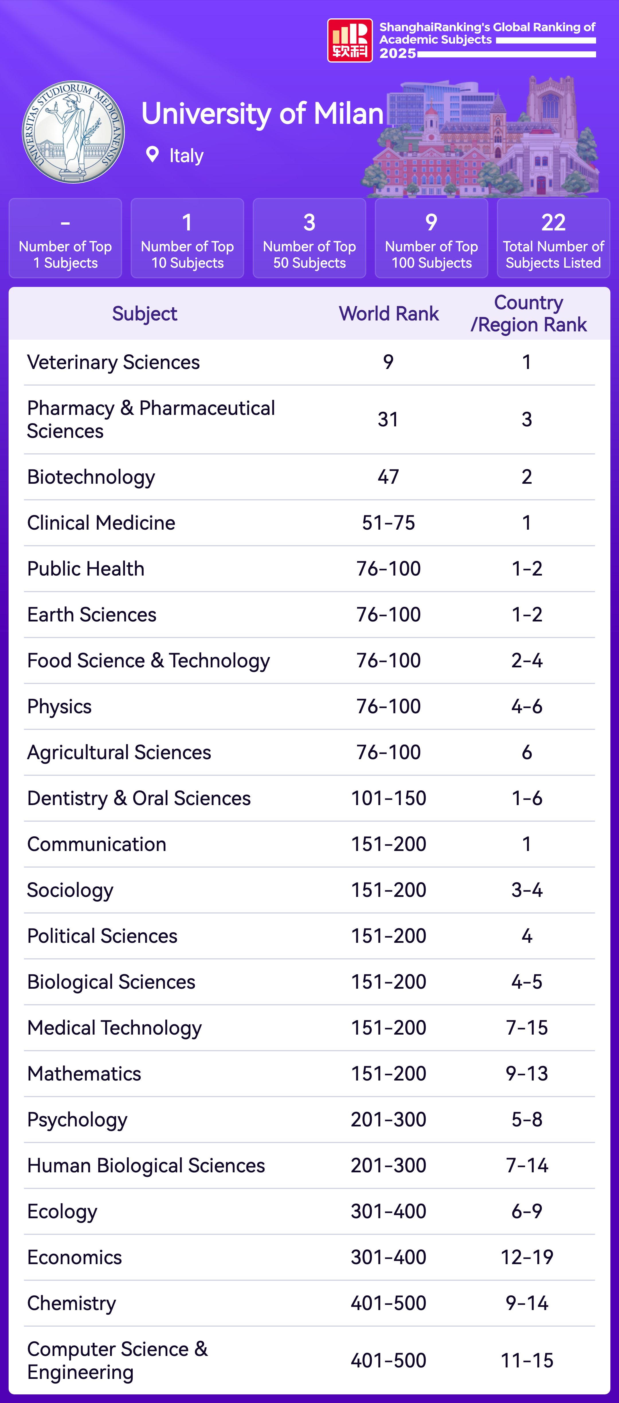Brief Statement The University of Milan is a public teaching and research university, the only Italian among the 21 prestigious members of LERU (League of European Research Universities), and an internationally highly ranked university. With a teaching staff of about 2,000 tenured professors and with about 60,000 students the University of Milan is the largest university in Lombardy, one of the most dynamic and internationally-oriented EU regions and leader in the Italian economy. The University of Milan’s Faculties offer a number of study programmes, which can be grouped into three macro-disciplinary areas: Humanities, Social Sciences and Law; Medicine and Healthcare; and Natural Sciences. The broad range of subjects taught, which currently consists of 64 Undergraduate programs, 56 Masters programs, 9 Single-cycle programs, 33 Doctoral programs, and several Advanced Vocational programs, attracts students from Italy and the whole world. The University’s research and teaching activities have developed over the years and have received important international recognitions. The University’s main campus is located in a 15th century monumental complex in the heart of Milan, a city with countless artistic points of interest in the north of Italy, known throughout the world for fashion, design, publishing, theatre, music, sports, food and its international trade fairs. Mission Statement The University of Milan is a research-intensive university. The key objectives of its strategy are the development of highly-skilled human capital and of high-quality scientific research. Its inclusion in the League of European Research Universities (LERU) as the only Italian institution, as well as its top position among Italian universities in all the international rankings based on scientific productivity, are indicators of success in pursuing such strategy. At the same time, the University of Milan acknowledges the plurality of missions that universities are currently expected to perform vis-à -vis the challenges of globalization and of knowledge-based economies. For this reason, it pursues all the functions deemed necessary to create a European Higher Education Area (EHEA): production of new knowledge through cutting-edge scientific research, formation of human capital with varying degrees of specialization, provision of life-long learning, knowledge exchange, contribution to local development, international exchange of knowledge and human capital. In performing each of these functions, the University of Milan aims at the highest level of quality that can be achieved given the available resources. Its strategic plan incorporates such objectives. Internal as well as external evaluation is then used to assess the degree to which such objectives, and especially high quality standards in each of the functions assigned to the University structures, have been achieved. Rector: Prof. Gianluca VAGO rettore@unimi.it Vice-rector: Prof. Maria Daniela CANDIA daniela.candia@unimi.it Pro-rector for Research: Prof. Chiara TONELLI chiara.tonelli@unimi.it Pro-rector for Teaching: Prof. Giuseppe DE LUCA giuseppe.deluca@unimi.it Head of Research Division: Angelo CASERTANO angelo.casertano@unimi.it Responsible International Relations Office: Egill BOCCANERA egill.boccanera@unimi.it