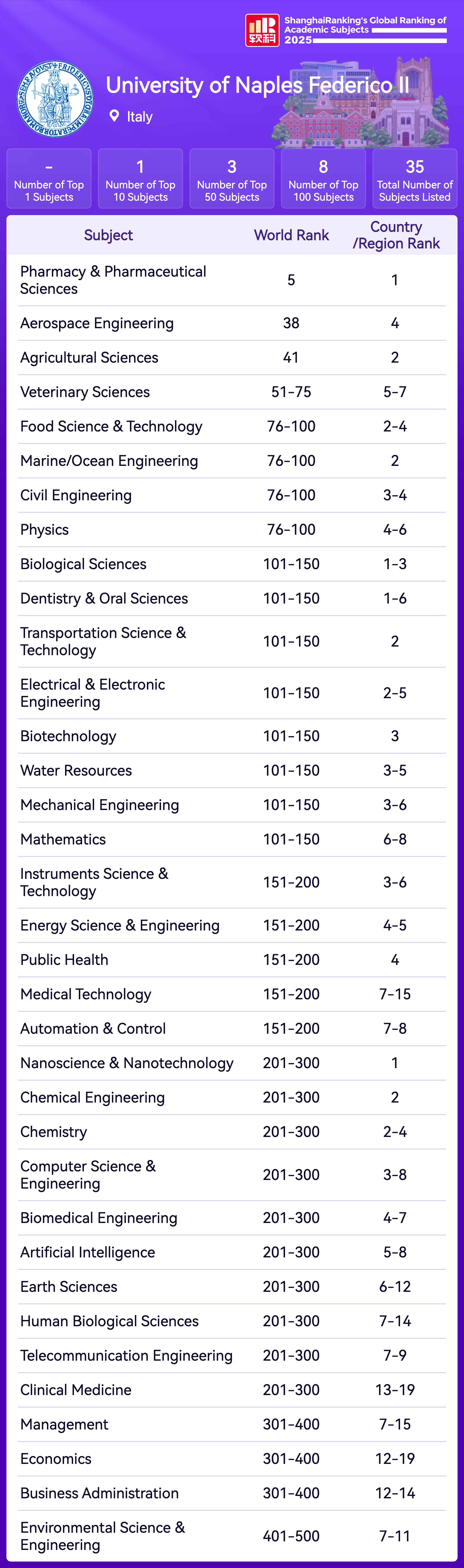 The Academic Ranking of World Universities (ARWU) is recognized as the precursor of global university rankings and the most trustworthy one. ARWU presents the world's top 1000 research universities annually based on transparent methodology and objective third-party data.