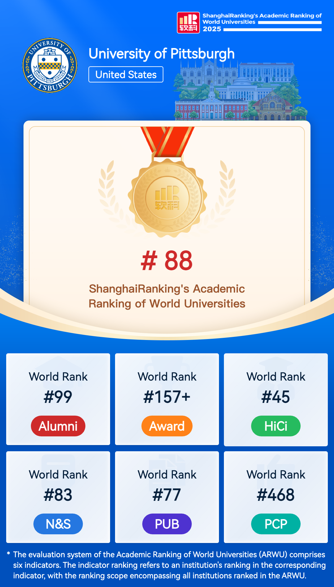 The University of Pittsburgh is an internationally respected center of learning and research, offering exceptional educational opportunities in the arts, sciences, and professions. The University of Pittsburgh’s mission is to advance teaching, research, and public service. This three-part commitment enables the University to serve others by •Educating diverse students from the region, the nation, and the world; •Expanding boundaries of knowledge, discovery, and technology; and •Enhancing quality of life in the western Pennsylvania region and beyond. The University began in the Pennsylvania wilderness as the Pittsburgh Academy in 1787, the year the U.S. Constitution was adopted. Thirty-two years later, the Pittsburgh Academy became the Western University of Pittsburgh, and in 1908, the school changed its name to the University of Pittsburgh. Graduate degrees have been conferred since 1836, and the first doctoral program was developed in 1884. A private institution for most of its past, the University of Pittsburgh became state-related in 1966, establishing a relationship with the Commonwealth of Pennsylvania that continues to benefit both partners. Today, as an elected member of the prestigious Association of American Universities, the University of Pittsburgh claims its place among the top public research universities in the nation. All campuses of the University of Pittsburgh are accredited by the Middle States Association of Colleges and Schools’ Commission on Higher Education. Schools, programs, and departments may furthermore be accredited by discipline-specific accrediting bodies. As a state-related, coeducational institution, the University of Pittsburgh’s Pittsburgh campus offers a multitude of degree-granting and other programs housed in 16 undergraduate, graduate, and professional schools. The University system includes the Pittsburgh campus and four regional campuses at Bradford, Greensburg, Johnstown, and Titusville. There are more than 140 academic, research, and administrative buildings and residence halls located on the Pittsburgh campus, which covers 145 acres in the culturally rich Oakland neighborhood. At the heart of the campus stands a central landmark—the Cathedral of Learning, a 42-story Gothic tower, which is the tallest school building in the Western Hemisphere. The Cathedral contains the Nationality Rooms, 31 classrooms, each designed to reflect a distinct culture and providing an overall, multidimensional understanding of America’s heritage. At the Pittsburgh campus, 5,430 faculty serve 29,178 students, including 9,250 graduate and 19,928 undergraduate students. Alumni accomplishments range from managing Fortune 500 corporations, to writing best-selling novels, to the discovery of the polio vaccine, to unlocking the secrets of DNA ... and more. In the 21st century, the University of Pittsburgh remains a place of enduring tradition and vitality, true to the work ethic of western Pennsylvania, rich in intellectual rigor, and committed to preparing students for their lives and careers.