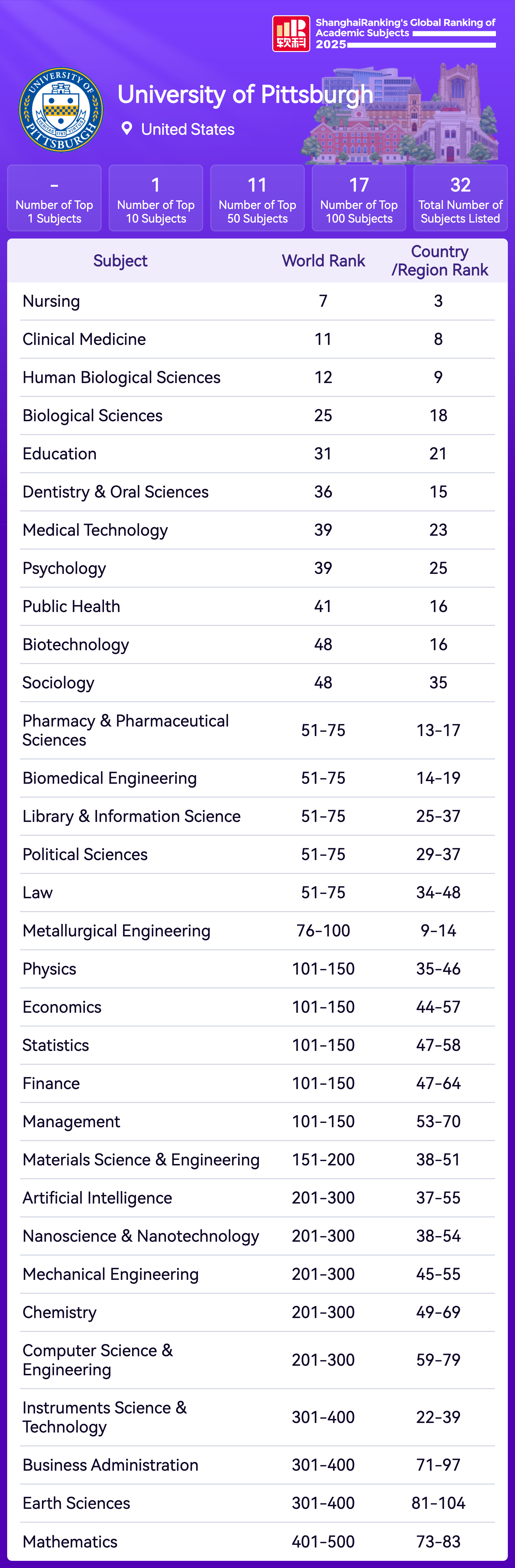 | Subject | Rank |