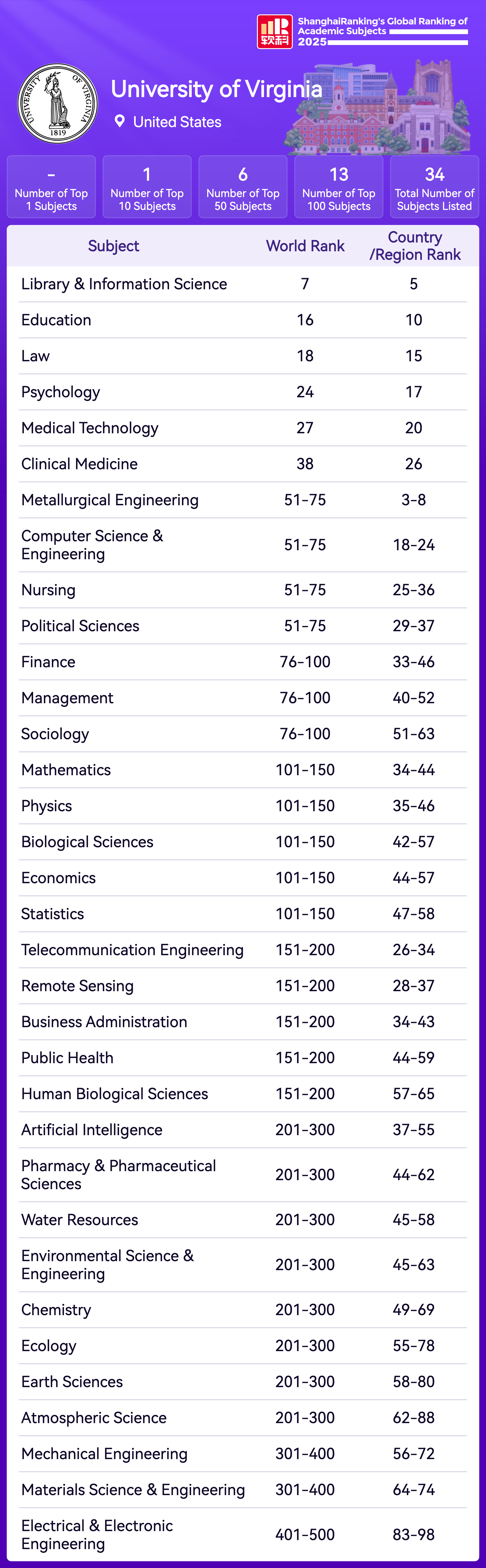 | Subject | Rank |