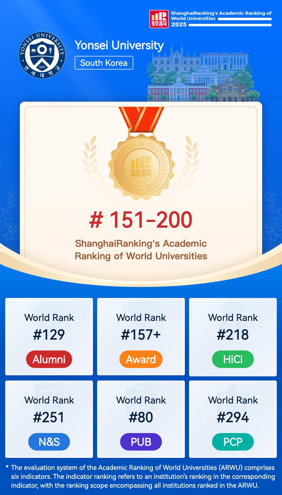 Being the oldest private university in Korea, Yonsei University was first established in 1885 by Christian missionaries. Our mission is to educate leaders who will contribute to humanity in the spirit of “truth and freedom.” The 300,000 Yonsei alumni who take this calling to heart can be found manifesting this proud spirit from leadership positions around the world. Yonsei’s main campus is ensconced in a spacious, picturesque and natural setting located minutes away from the economic, political, and cultural centers of Seoul's metropolitan downtown. There are 19 graduate schools and 23 colleges that host a selective pool of students from around the world. Yonsei is proud of its history and reputation as a leading institution of higher education and research in Asia.